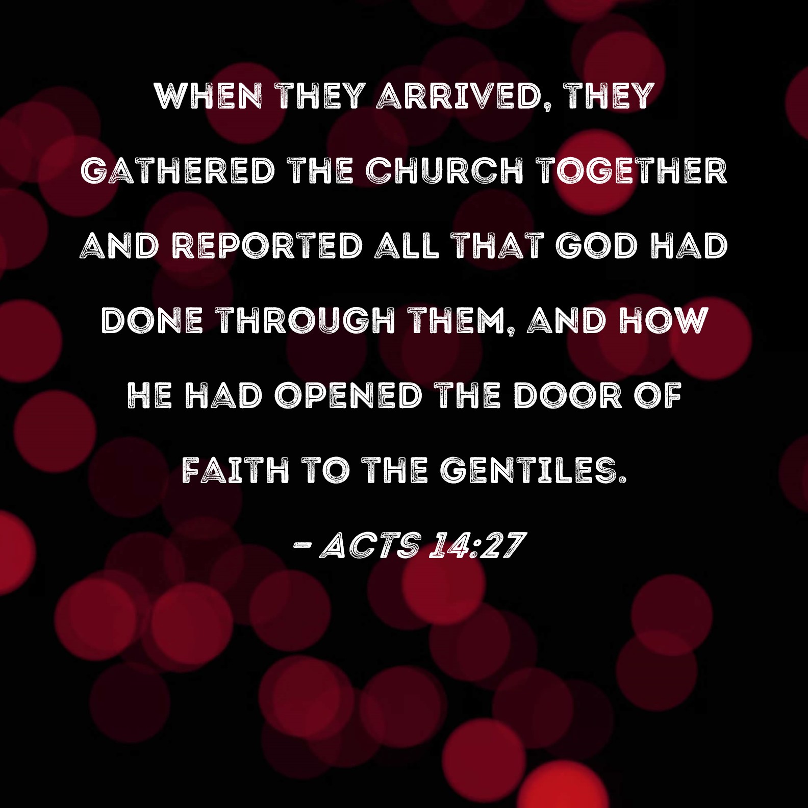 Acts 14:27 When they arrived, they gathered the church together and reported all that God had done through them, and how He had opened the door of faith to the Gentiles.