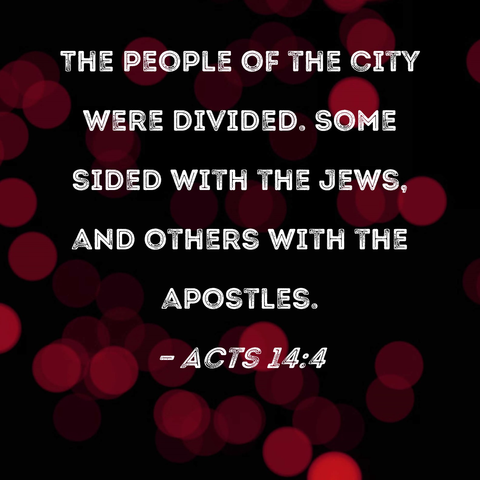 Acts 14:4 The people of the city were divided. Some sided with the Jews, and others with the apostles.