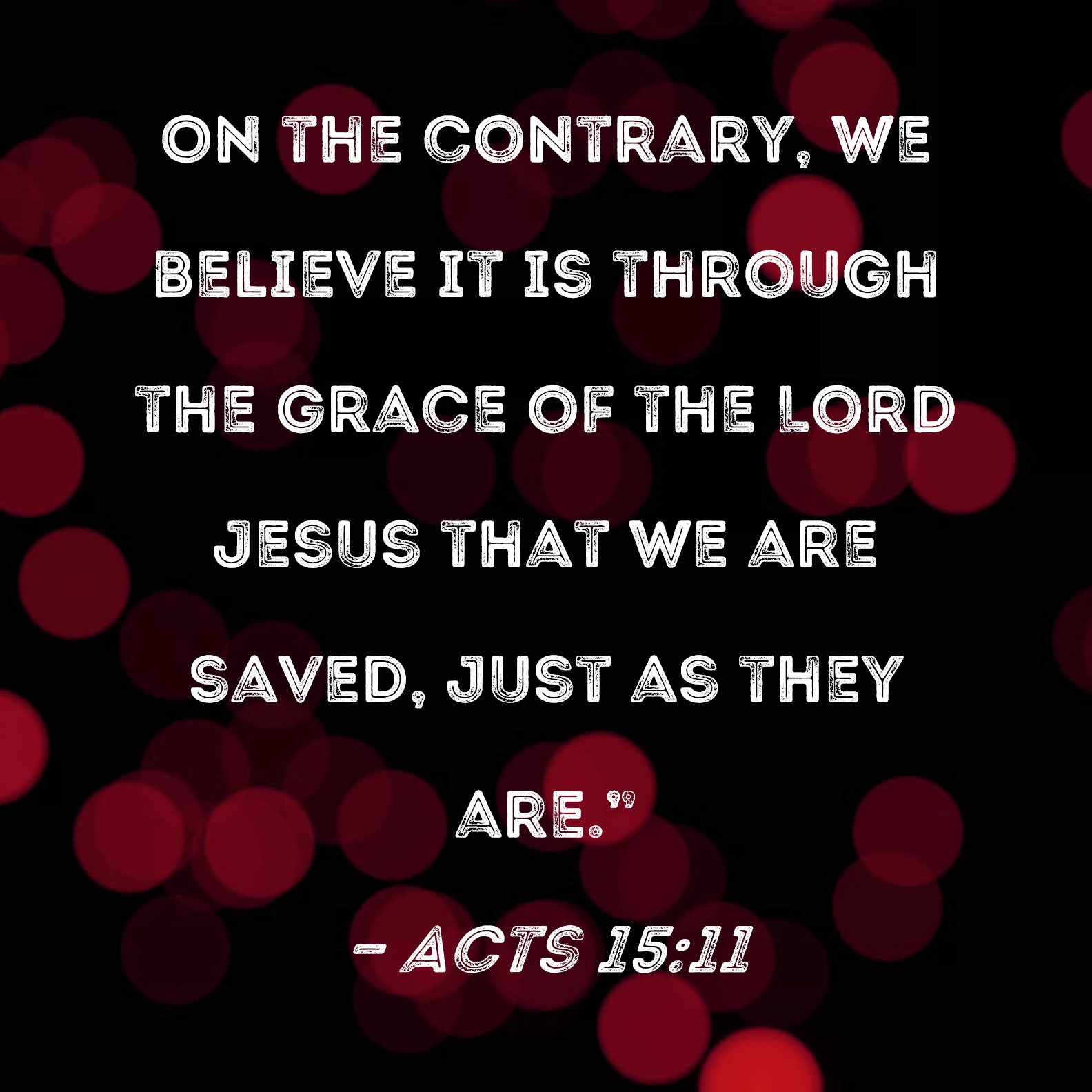 Acts 15:11 On the contrary, we believe it is through the grace of the Lord Jesus that we are saved, just as they are."