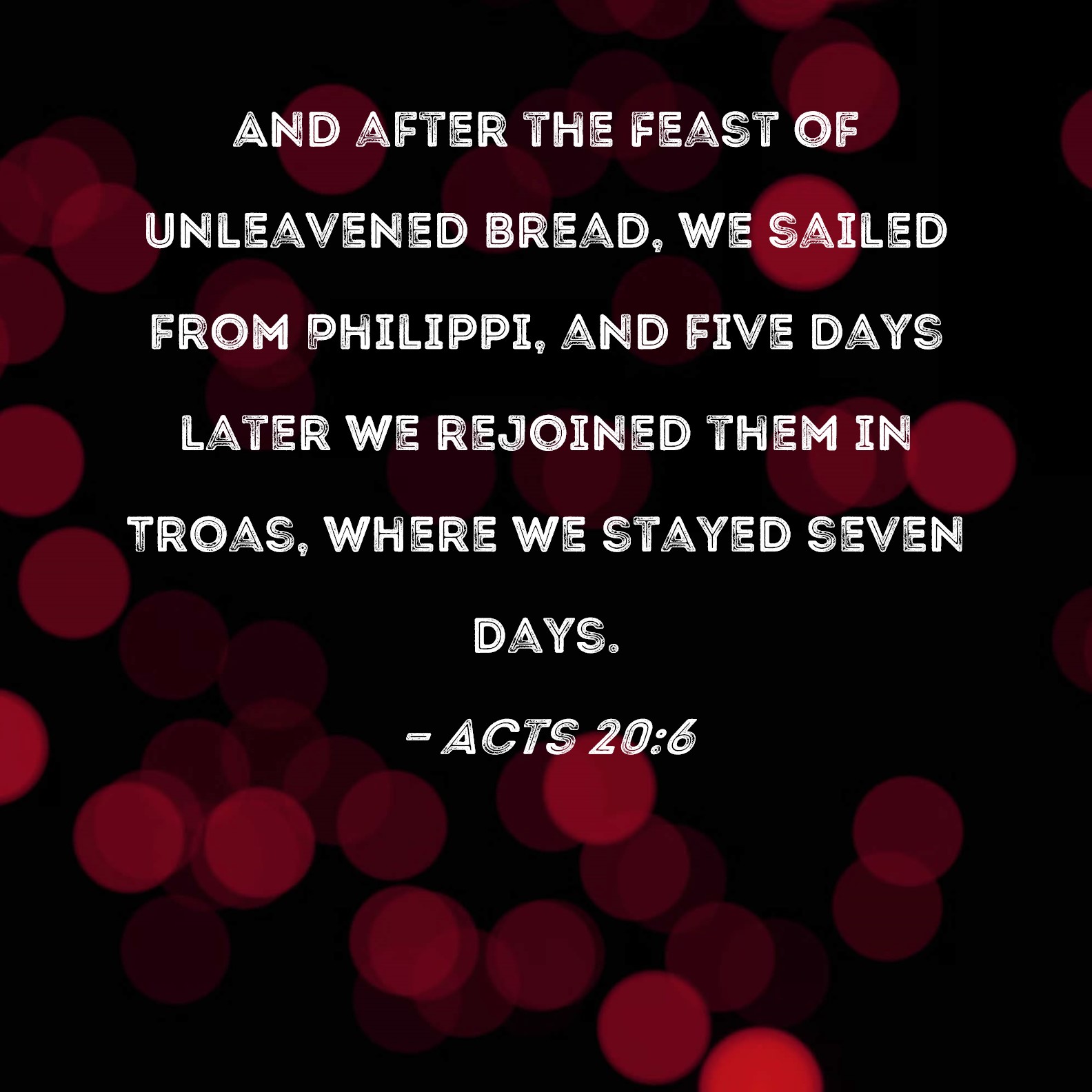KJV:  And we sailed away from Philippi after the days of unleavened bread, and came unto them to Troas in five days; where we abode seven days.
