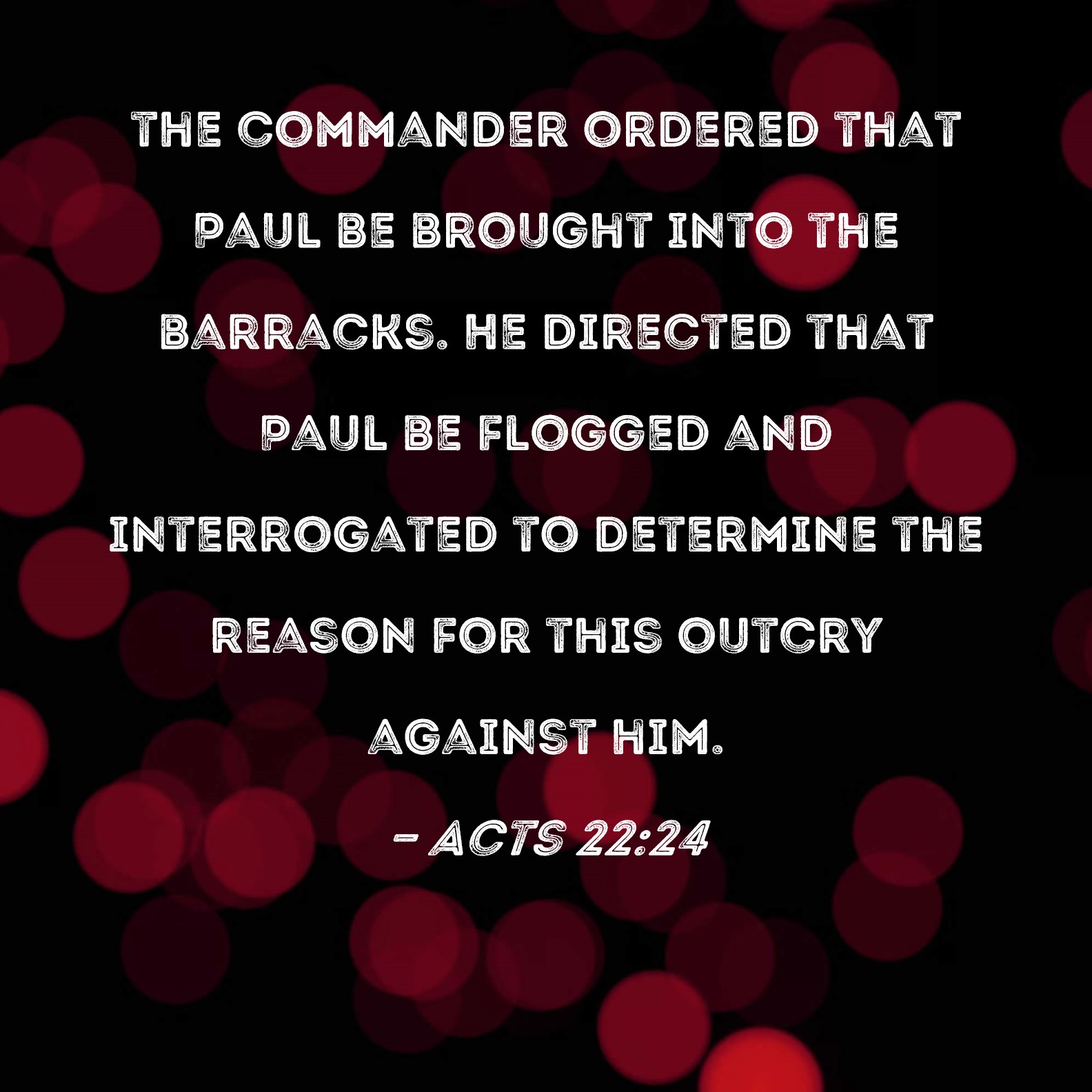 Acts 22:24 the commander ordered that Paul be brought into the barracks. He directed that Paul be flogged and interrogated to determine the reason for this outcry against him.