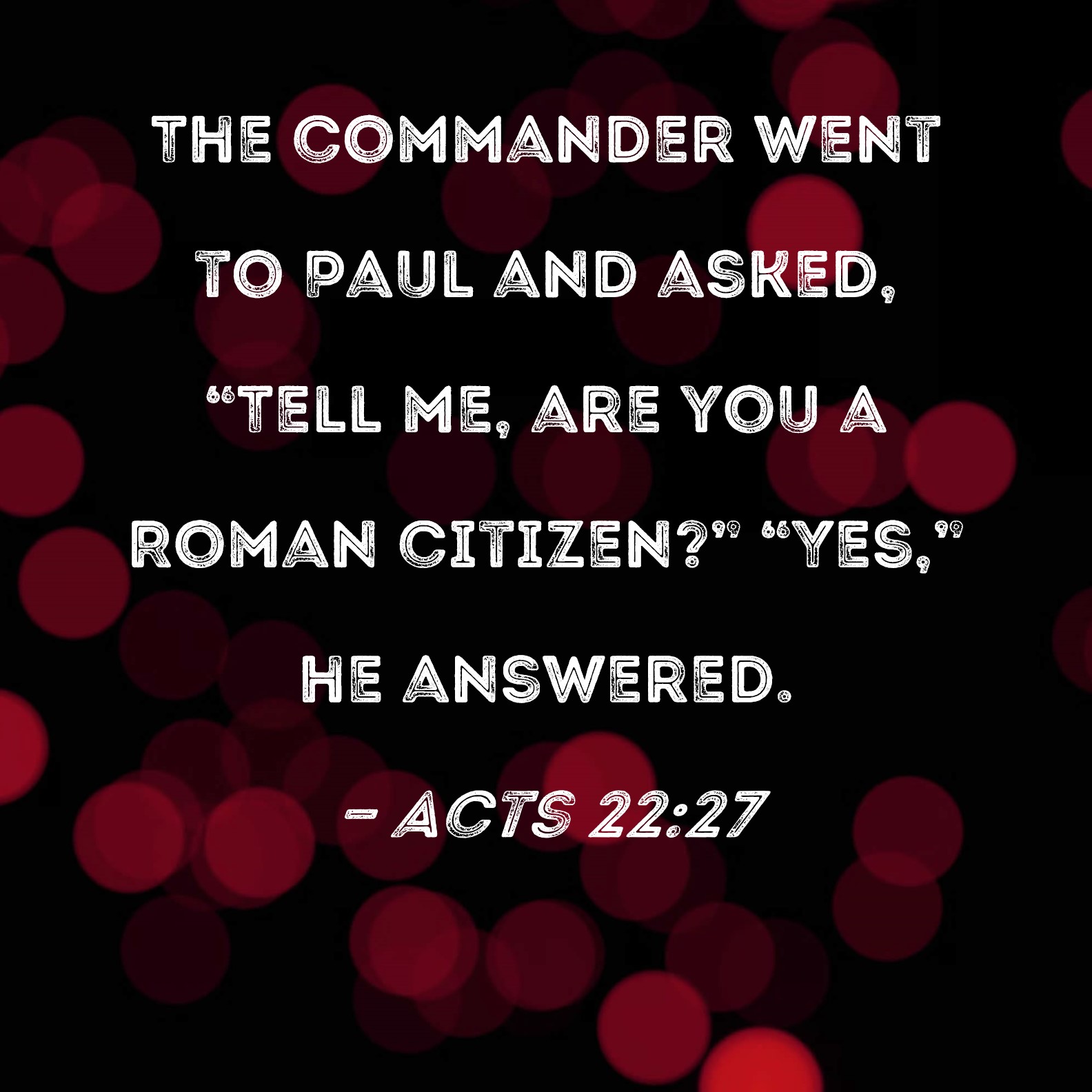 Acts 22:27 The commander went to Paul and asked, "Tell me, are you a Roman citizen?" "Yes," he answered.