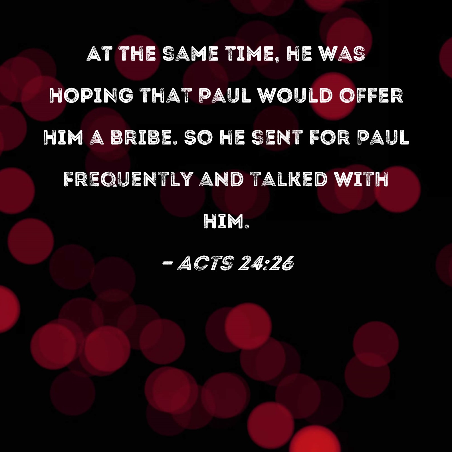Acts 24:26 At the same time, he was hoping that Paul would offer him a bribe. So he sent for Paul frequently and talked with him.