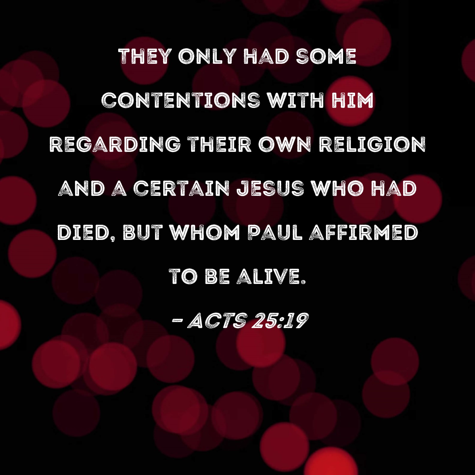 Acts 25:19 They only had some contentions with him regarding their own religion and a certain Jesus who had died, but whom Paul affirmed to be alive.