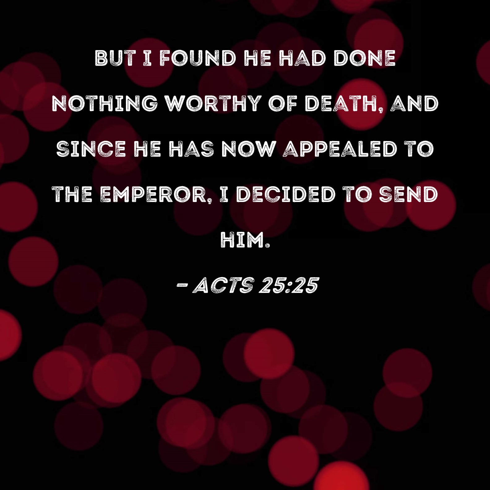 Acts 25:25 But I found he had done nothing worthy of death, and since he has now appealed to the Emperor, I decided to send him.