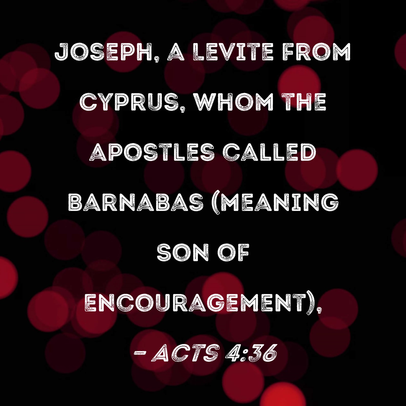 Acts 4:36 Joseph, a Levite from Cyprus, whom the apostles called Barnabas (meaning Son of Encouragement),