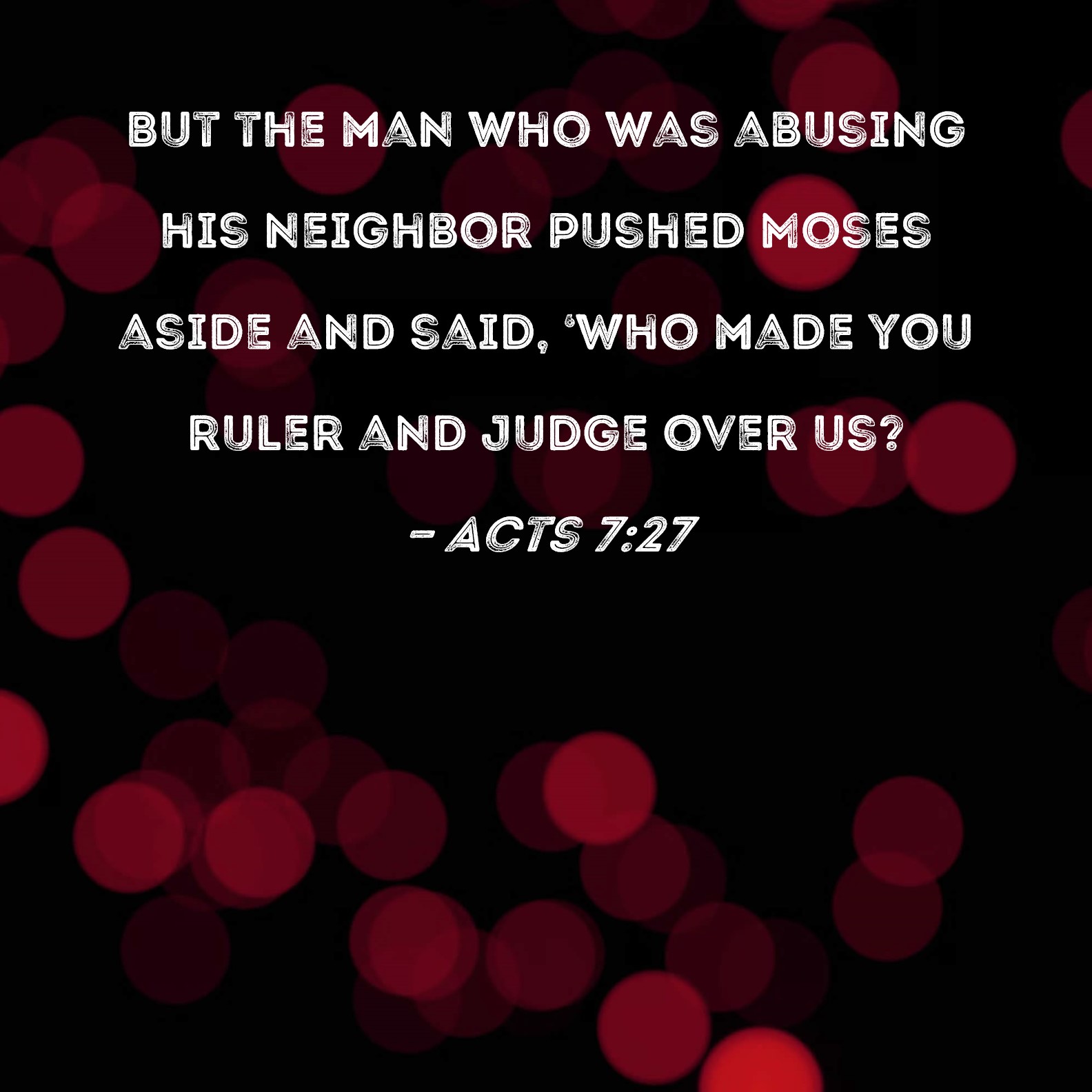 Acts 7:27 But the man who was abusing his neighbor pushed Moses aside and said, 'Who made you ruler and judge over us?