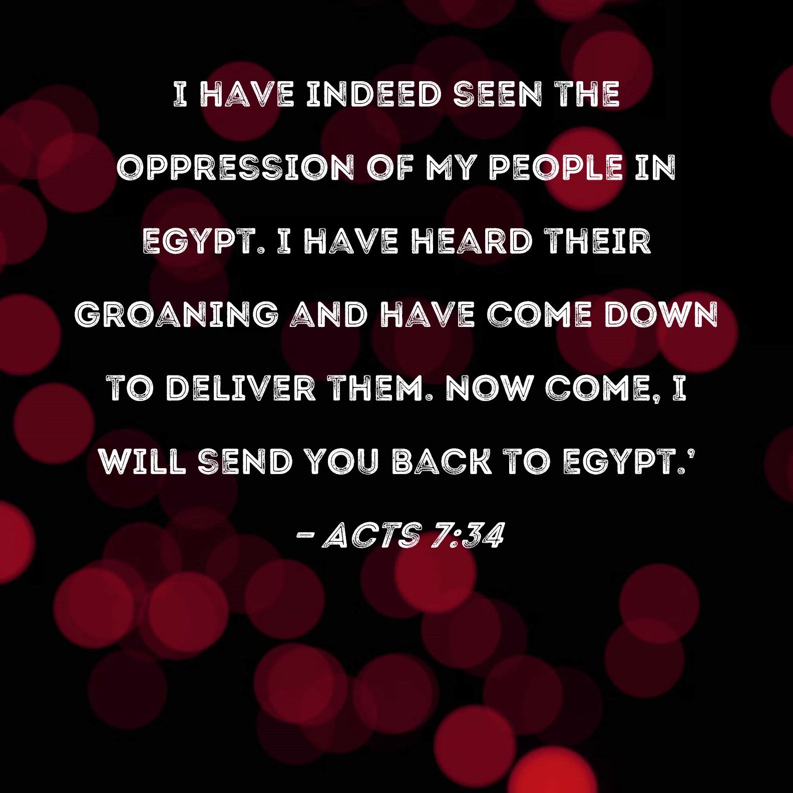 Acts 7:34 I have indeed seen the oppression of My people in Egypt. I have heard their groaning and have come down to deliver them. Now come, I will send you back to Egypt.'
