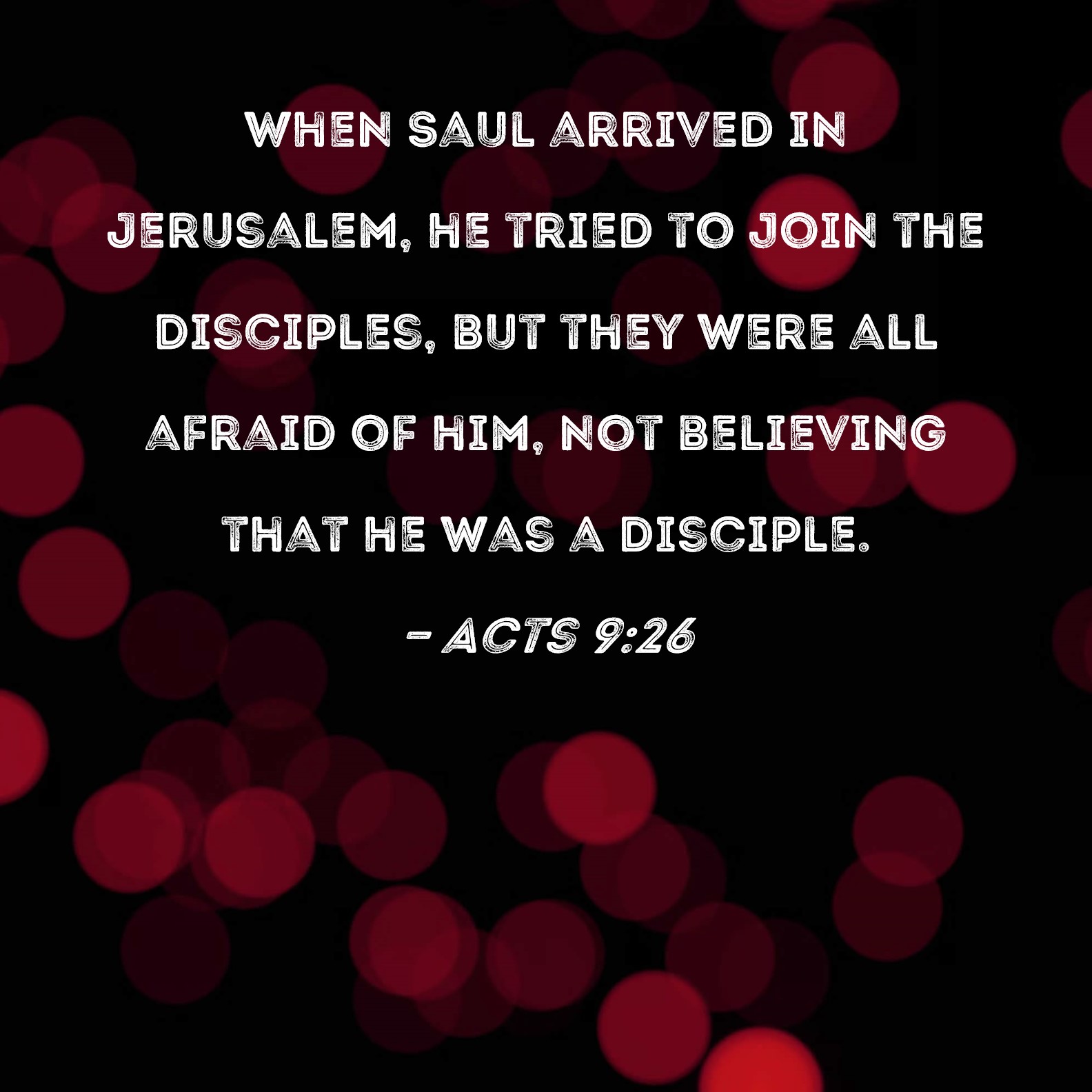Acts 9:26 When Saul arrived in Jerusalem, he tried to join the disciples, but they were all afraid of him, not believing that he was a disciple.