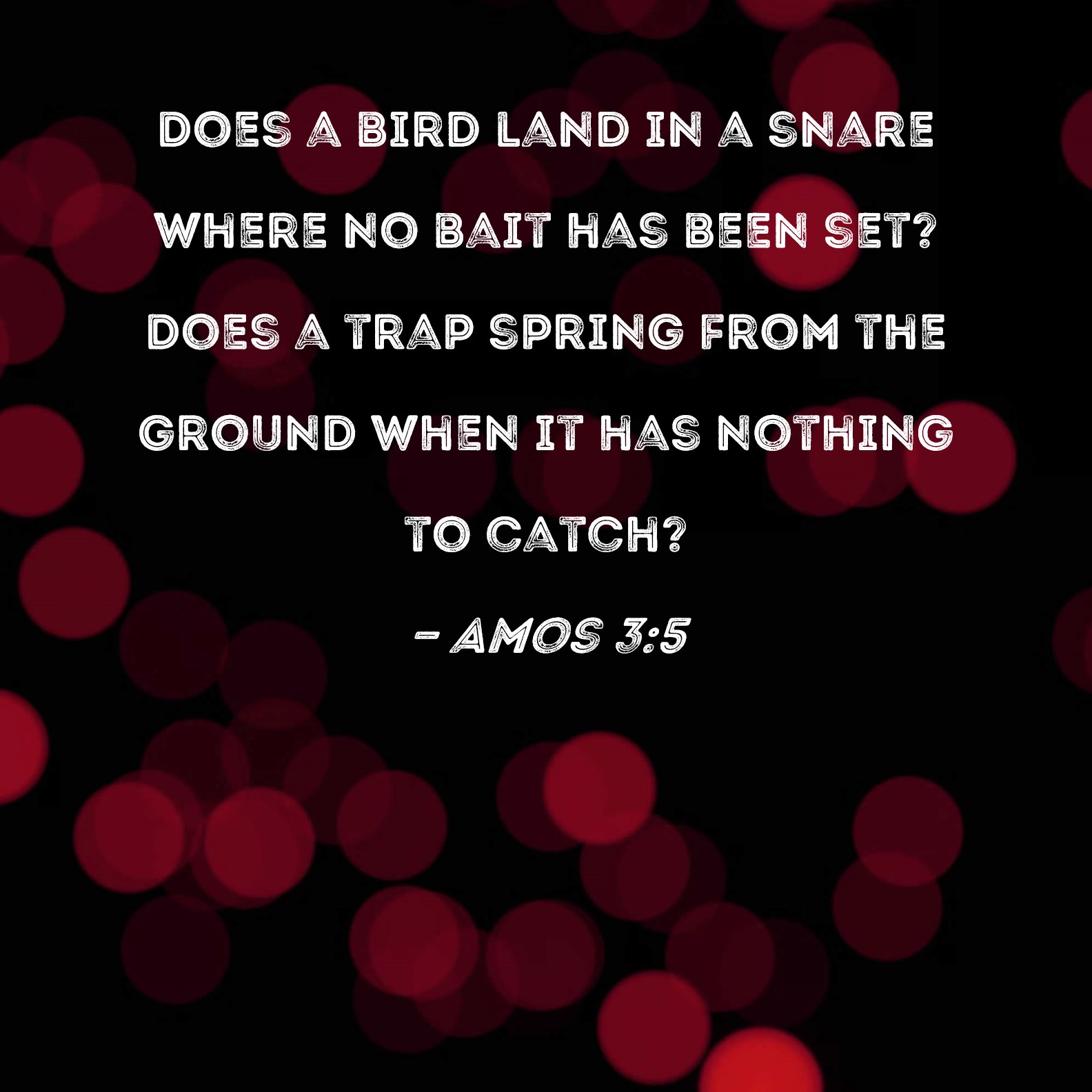 Amos 3:5 Does a bird land in a snare where no bait has been set? Does a trap spring from the ground when it has nothing to catch?