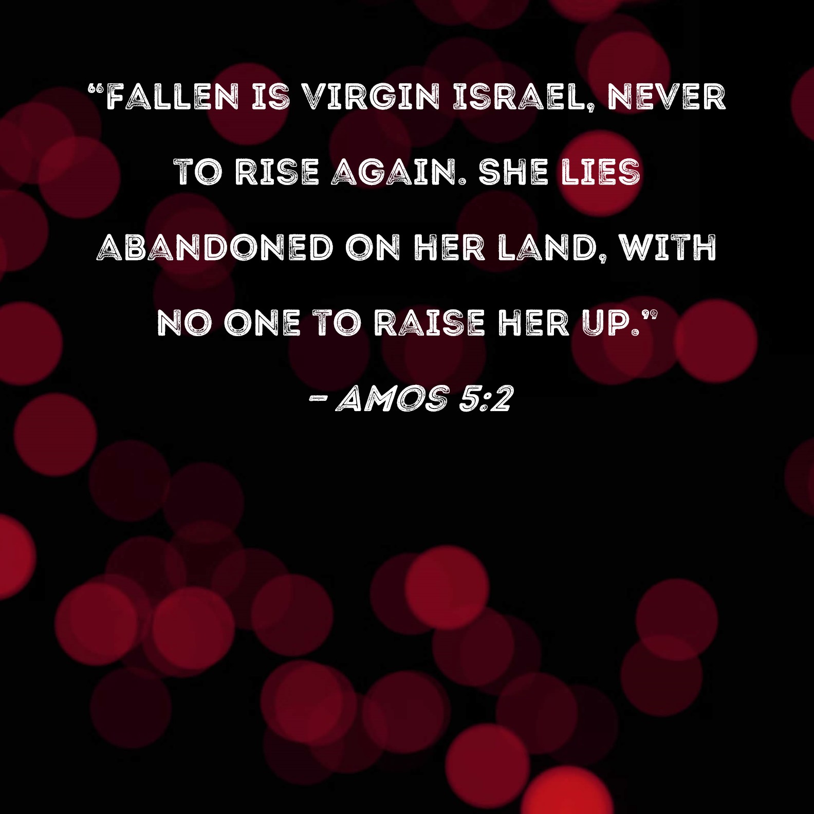 Amos 5:2 "Fallen is Virgin Israel, never to rise again. She lies abandoned on her land, with no one to raise her up."
