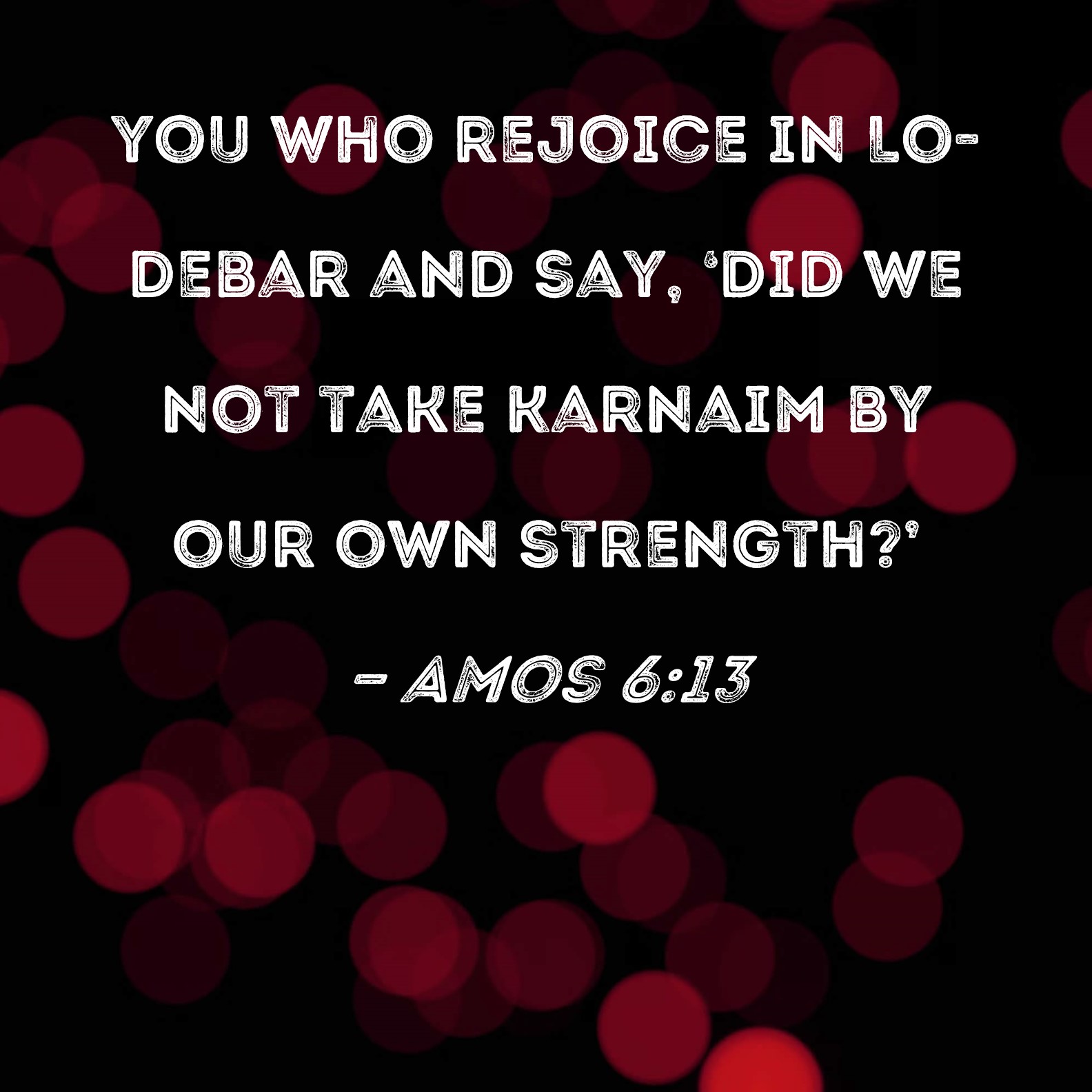 Amos 6:13 you who rejoice in Lo-debar and say, 'Did we not take Karnaim by our own strength?'