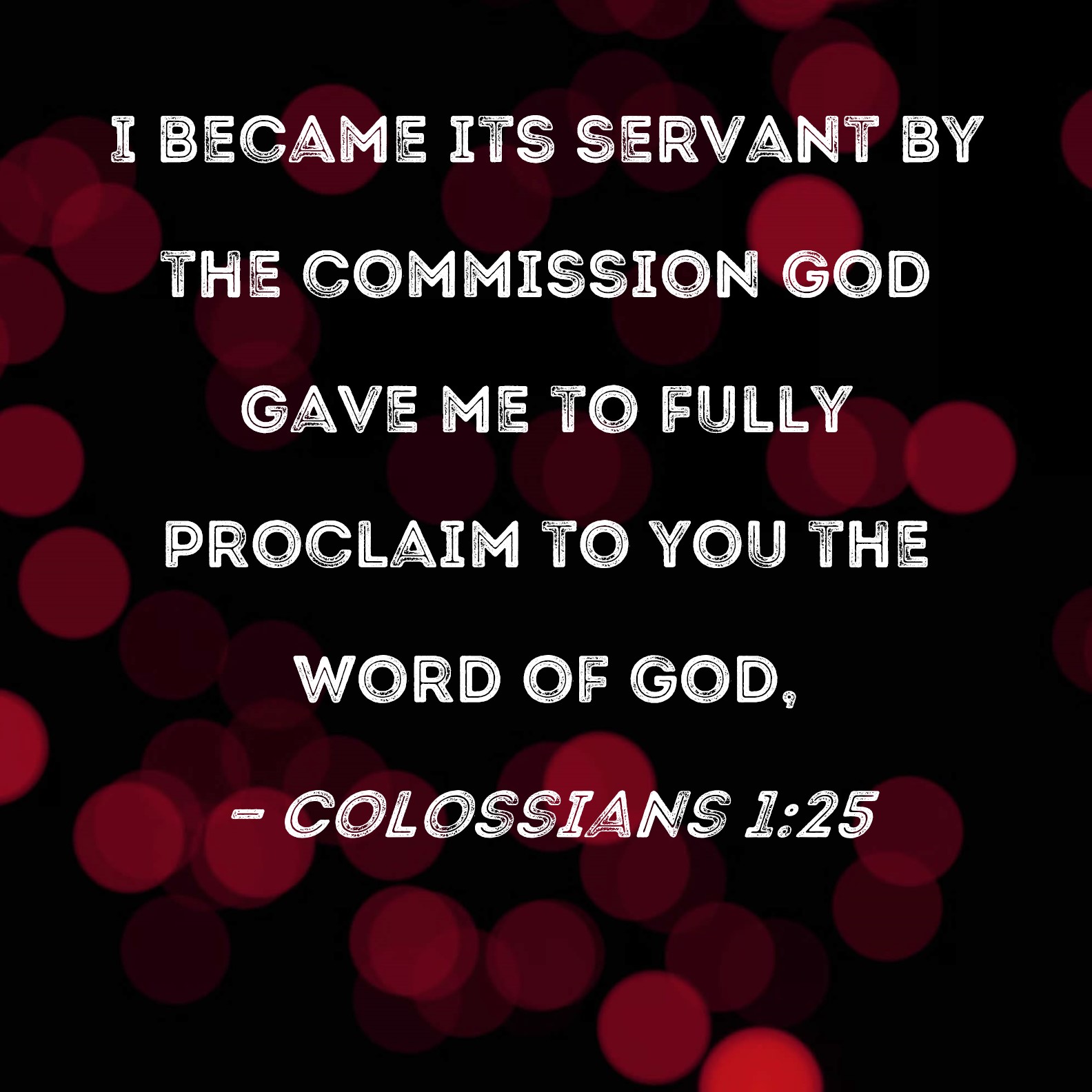 Colossians 1:25 I became its servant by the commission God gave me to fully proclaim to you the word of God,
