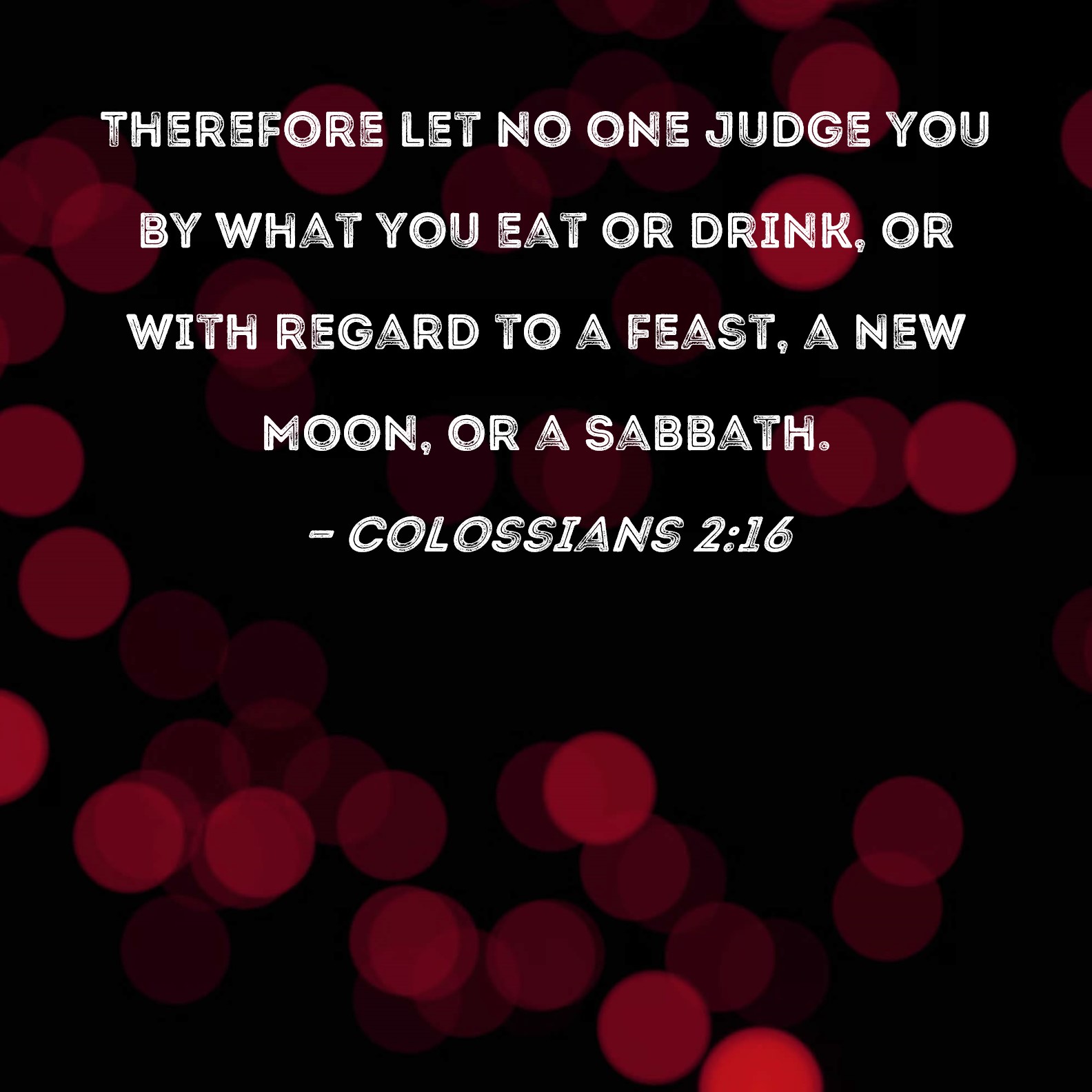 Colossians 2:16 Therefore let no one judge you by what you eat or drink, or with regard to a feast, a New Moon, or a Sabbath.