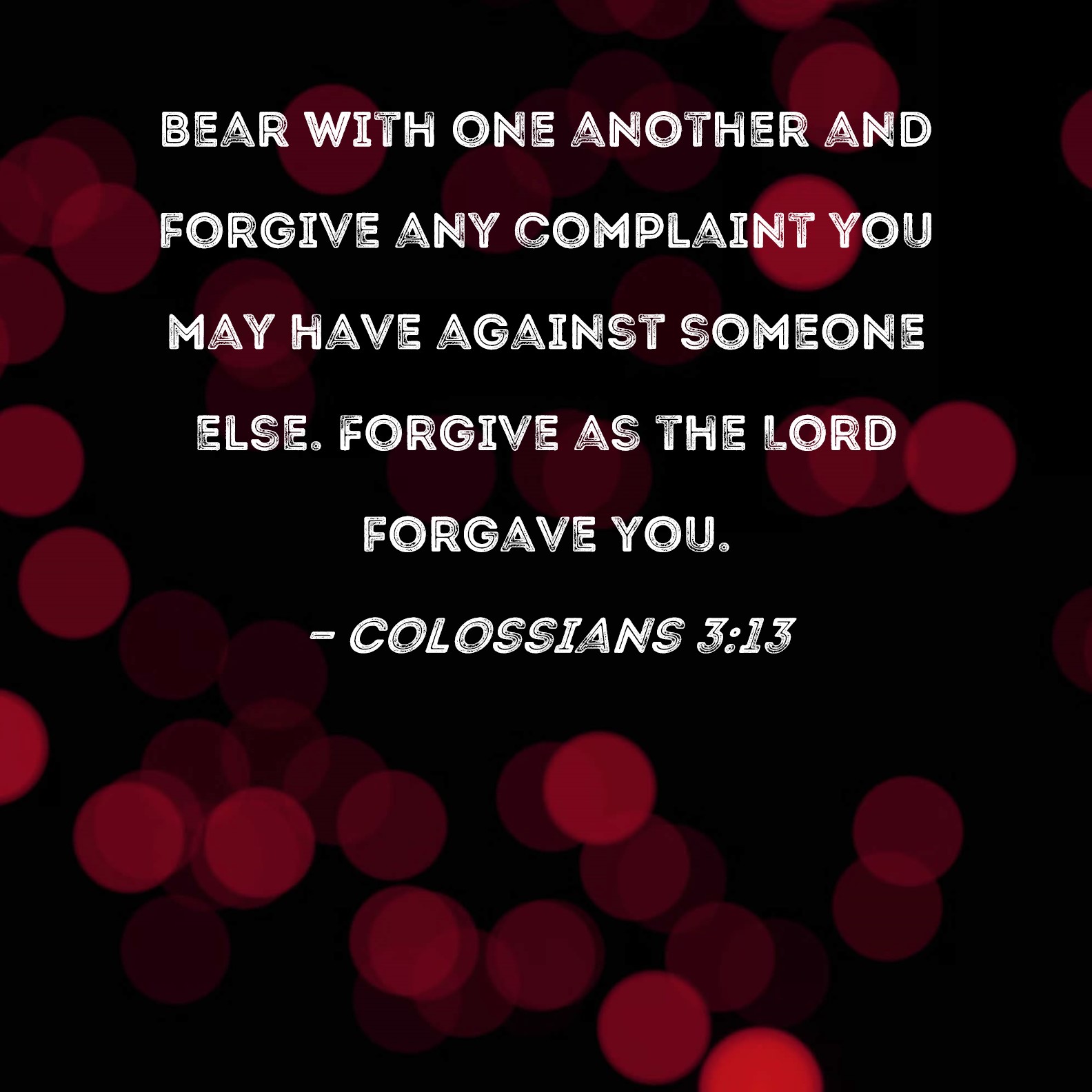 Colossians 3:13 Bear with one another and forgive any complaint you may have against someone else. Forgive as the Lord forgave you.