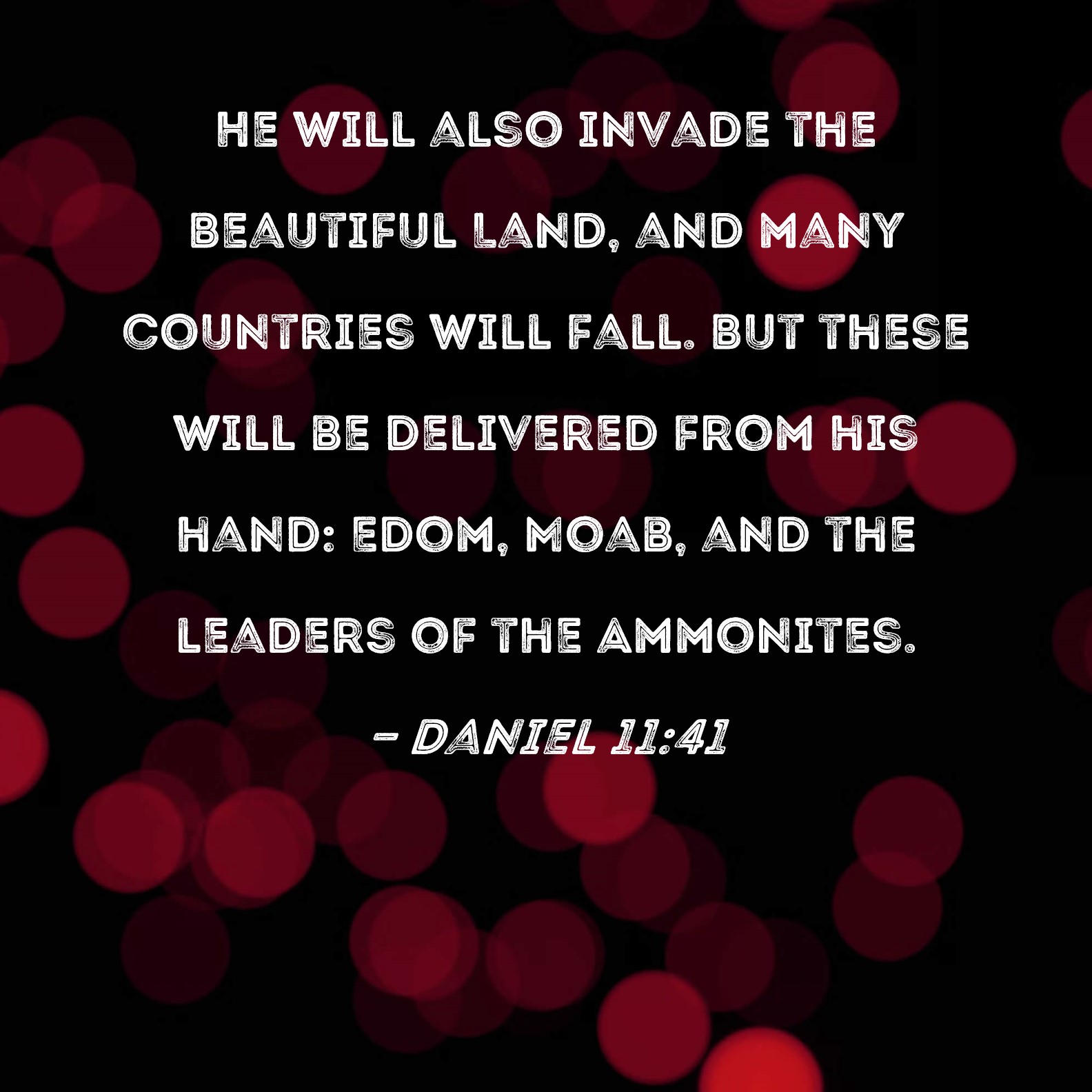 Daniel 11:41 He will also invade the Beautiful Land, and many countries will fall. But these will be delivered from his hand: Edom, Moab, and the leaders of the Ammonites.