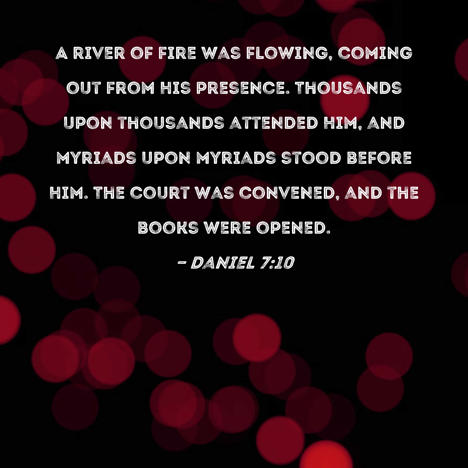 Daniel 7:10 A river of fire was flowing, coming out from His presence. Thousands upon thousands attended Him, and myriads upon myriads stood before Him. The court was convened, and the books were opened.