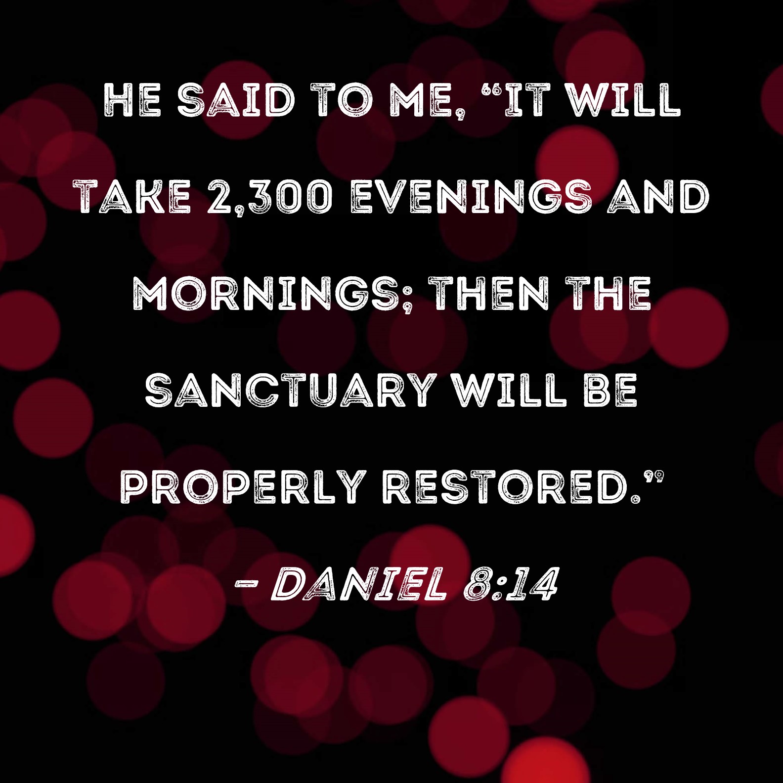 Daniel 8:14 He said to me, "It will take 2,300 evenings and mornings; then the sanctuary will be properly restored."
