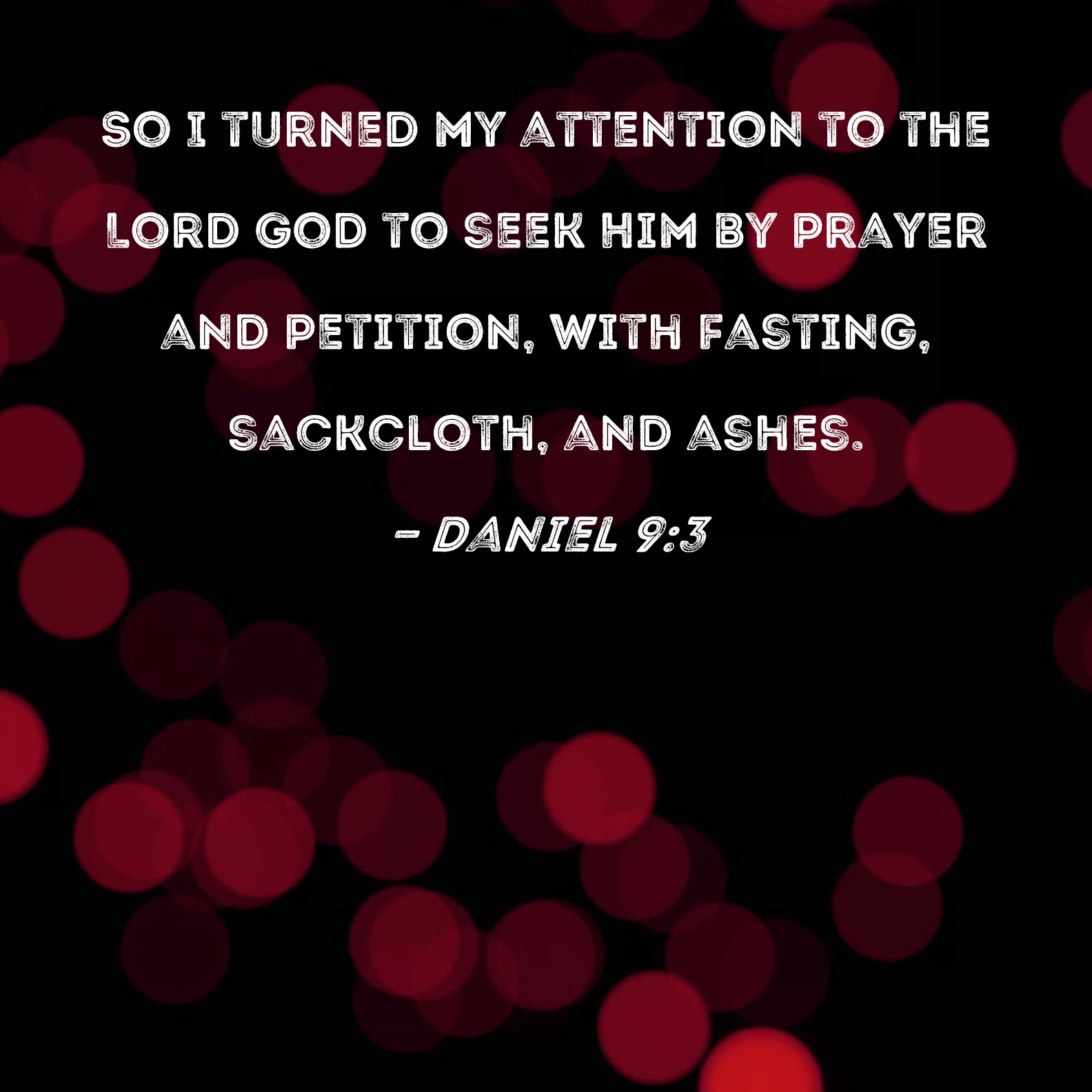 Daniel 9:3 So I turned my attention to the Lord God to seek Him by prayer and petition, with fasting, sackcloth, and ashes.
