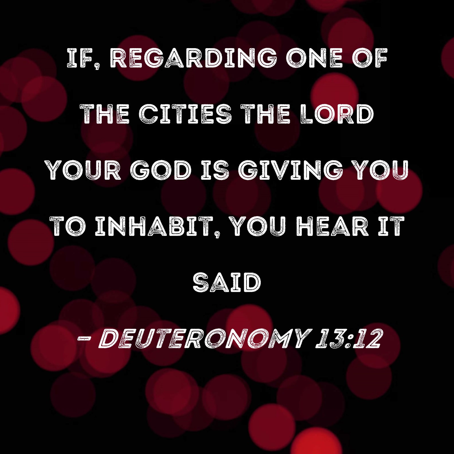 Deuteronomy 13:12 If, regarding one of the cities the LORD your God is giving you to inhabit, you hear it said