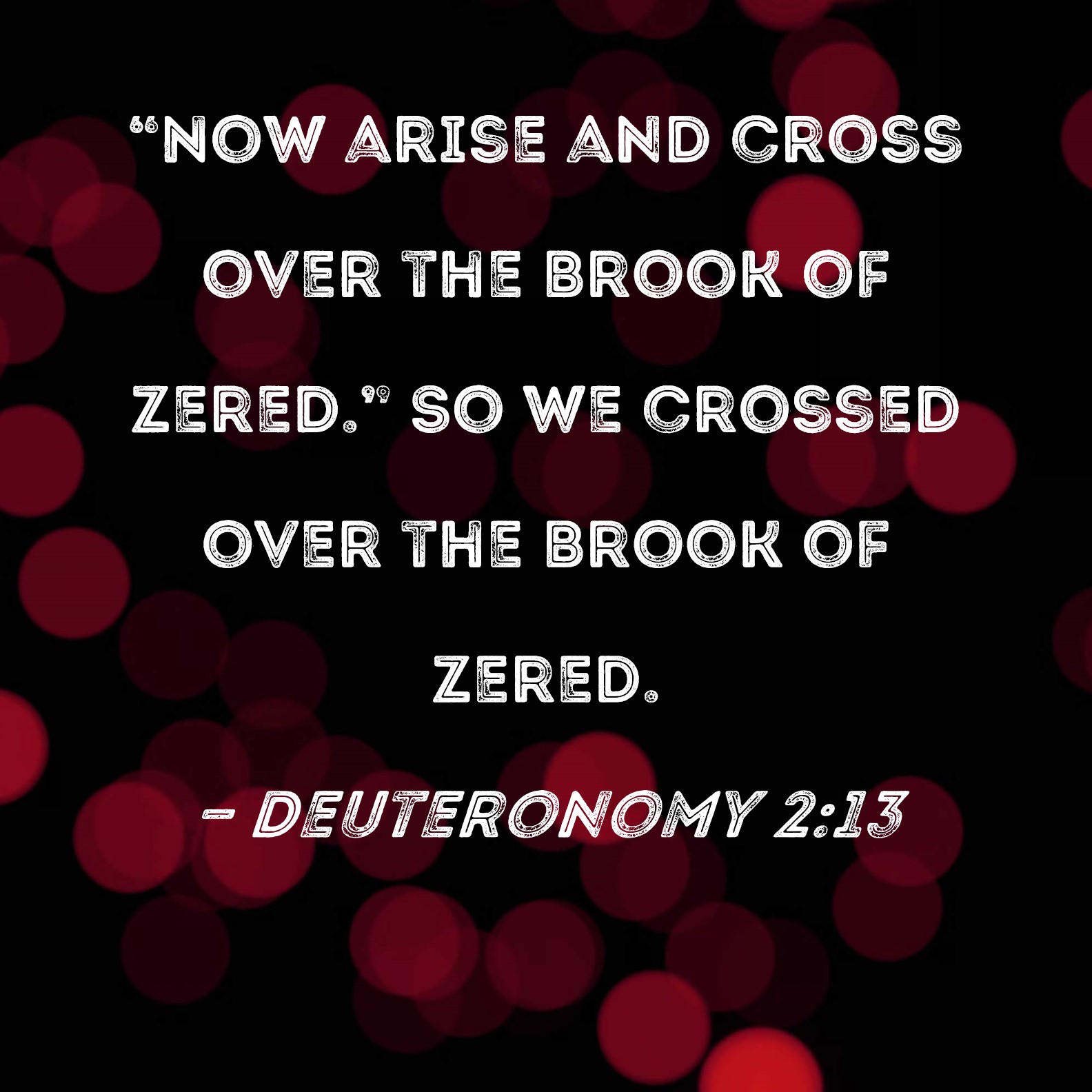 Deuteronomy 2:13 "Now arise and cross over the Brook of Zered." So we crossed over the Brook of Zered.