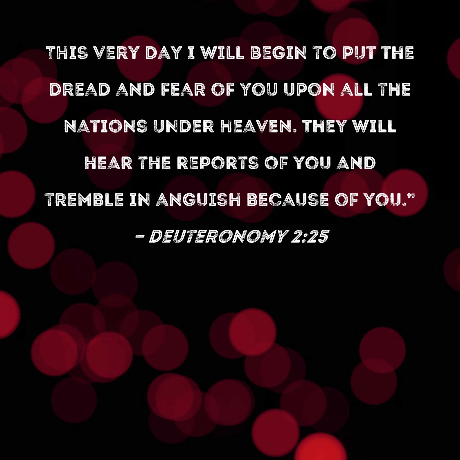 Deuteronomy 2:25 This very day I will begin to put the dread and fear of you upon all the nations under heaven. They will hear the reports of you and tremble in anguish because of you."