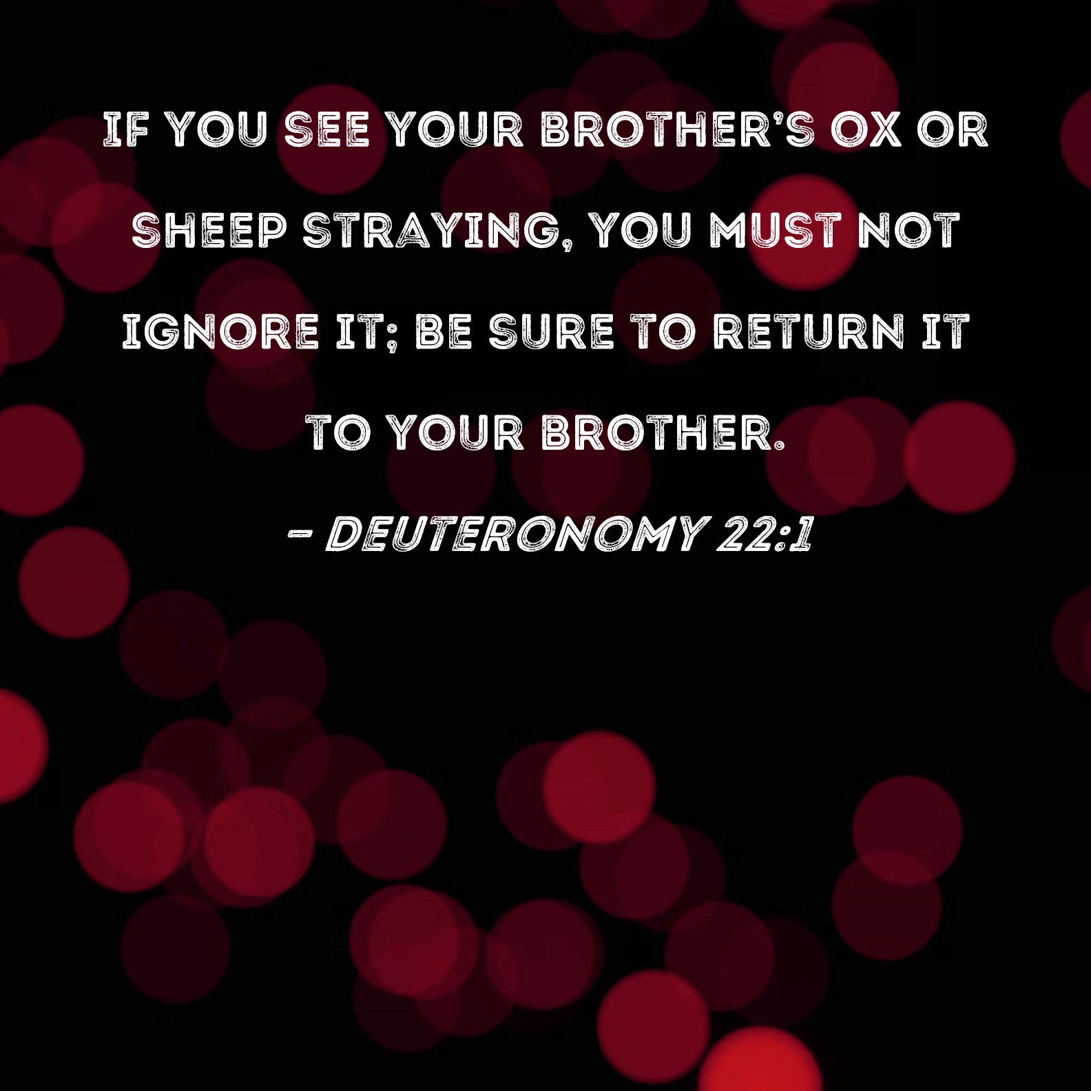 Deuteronomy 22:1 If you see your brother's ox or sheep straying, you must not ignore it; be sure to return it to your brother.