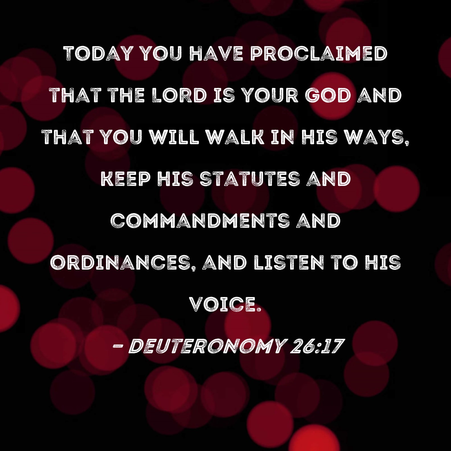 Deuteronomy 26:17 Today you have proclaimed that the LORD is your God and that you will walk in His ways, keep His statutes and commandments and ordinances, and listen to His voice.