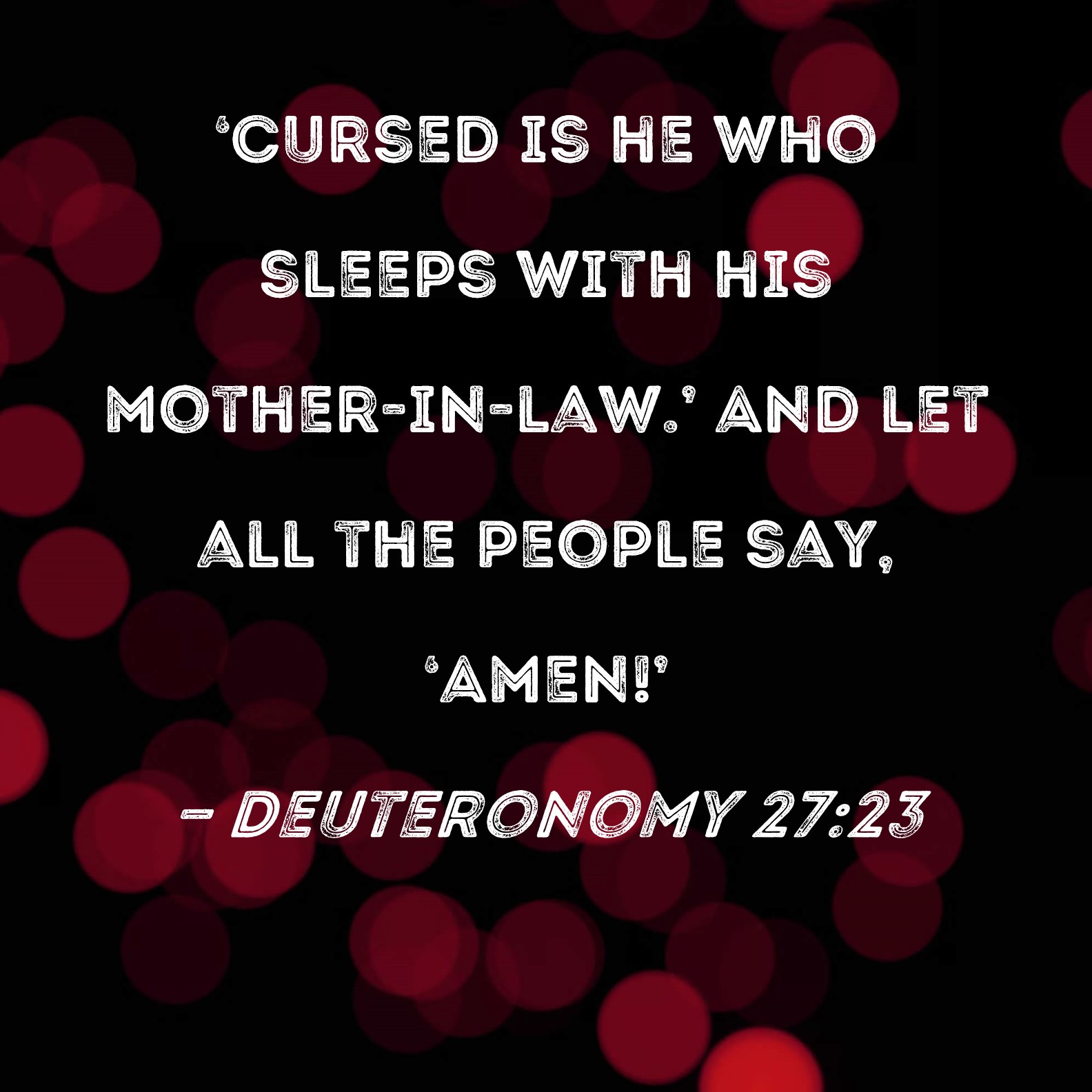Deuteronomy 27:23 Cursed is he who sleeps with his mother-in-law.' And let all the people say, 'Amen!'