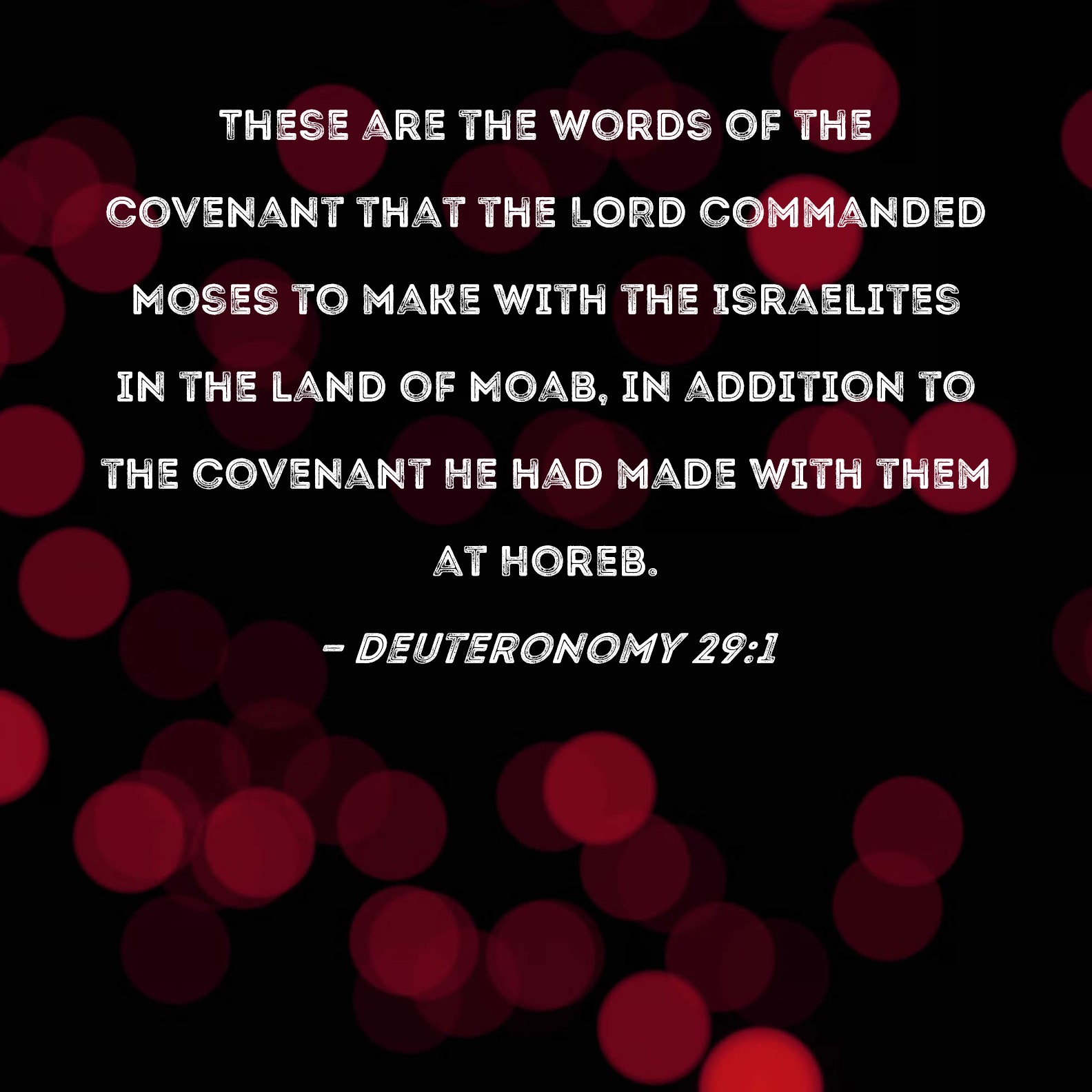 Deuteronomy 29:1 These are the words of the covenant that the LORD commanded Moses to make with the Israelites in the land of Moab, in addition to the covenant He had made with them at Horeb.