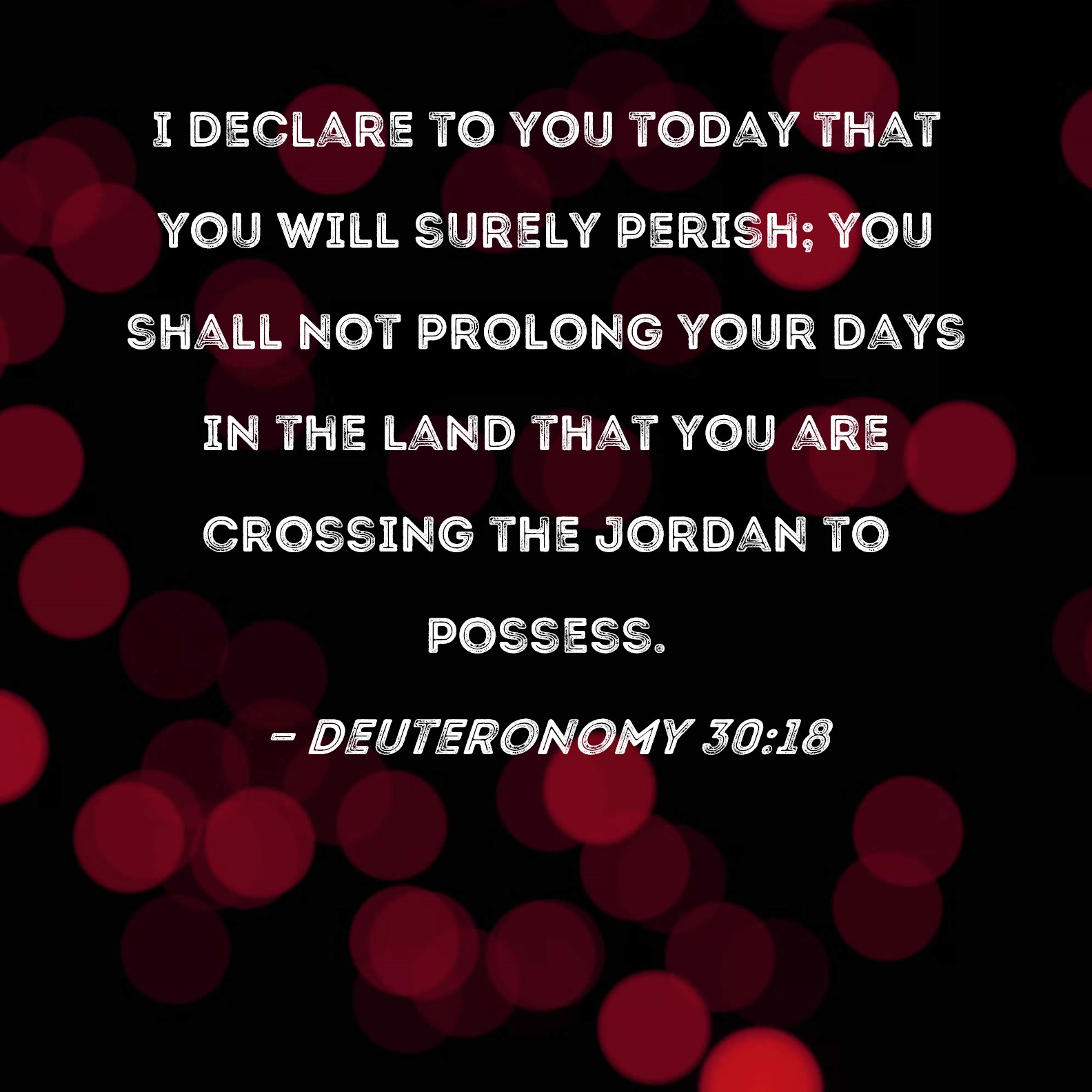 Deuteronomy 30:18 I declare to you today that you will surely perish; you shall not prolong your days in the land that you are crossing the Jordan to possess.