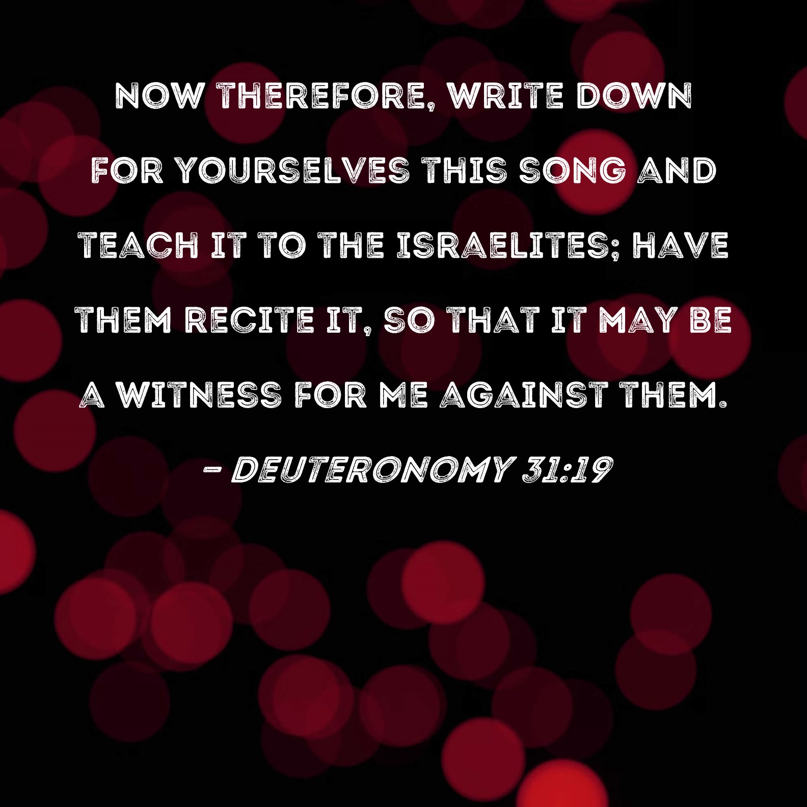 Deuteronomy 31:19 Now therefore, write down for yourselves this song and teach it to the Israelites; have them recite it, so that it may be a witness for Me against them.