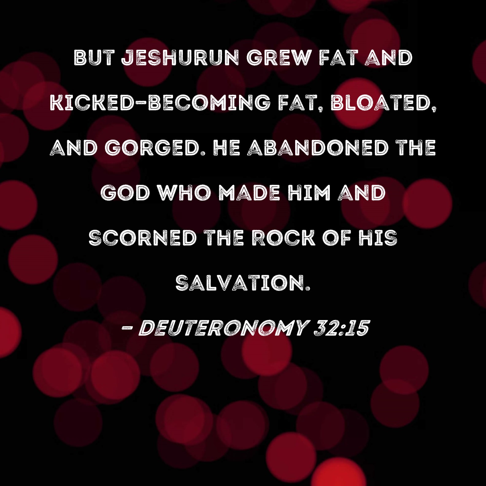 Deuteronomy 32:15 But Jeshurun grew fat and kicked--becoming fat, bloated, and gorged. He abandoned the God who made him and scorned the Rock of his salvation.