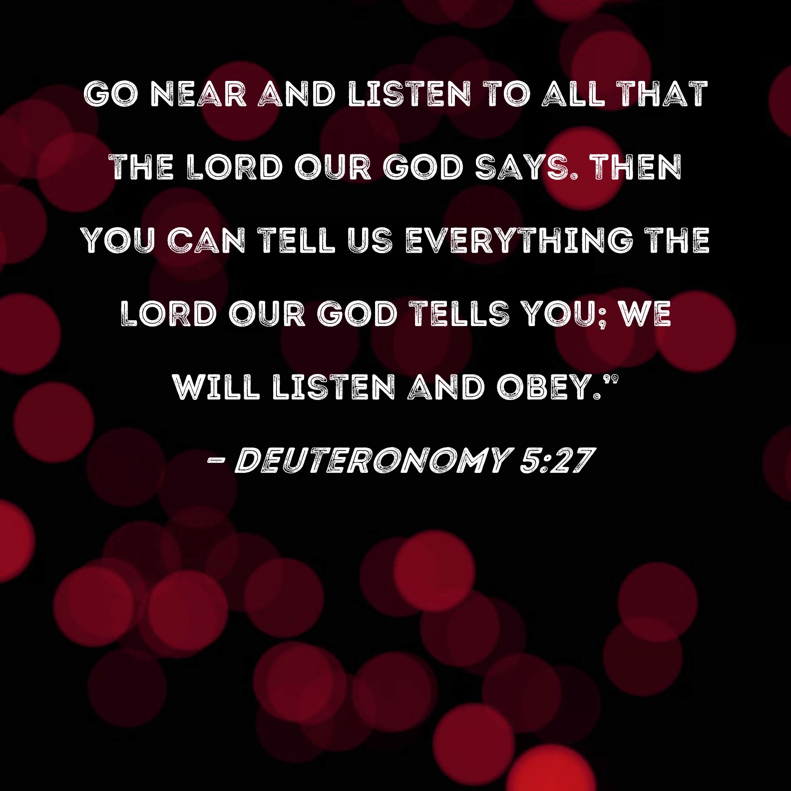 Deuteronomy 5:27 Go near and listen to all that the LORD our God says. Then you can tell us everything the LORD our God tells you; we will listen and obey."