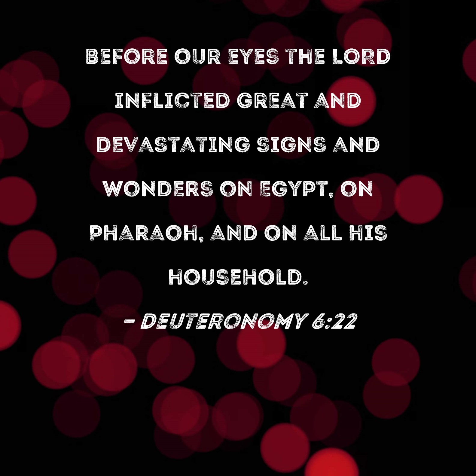 Deuteronomy 6:22 Before our eyes the LORD inflicted great and devastating signs and wonders on Egypt, on Pharaoh, and on all his household.