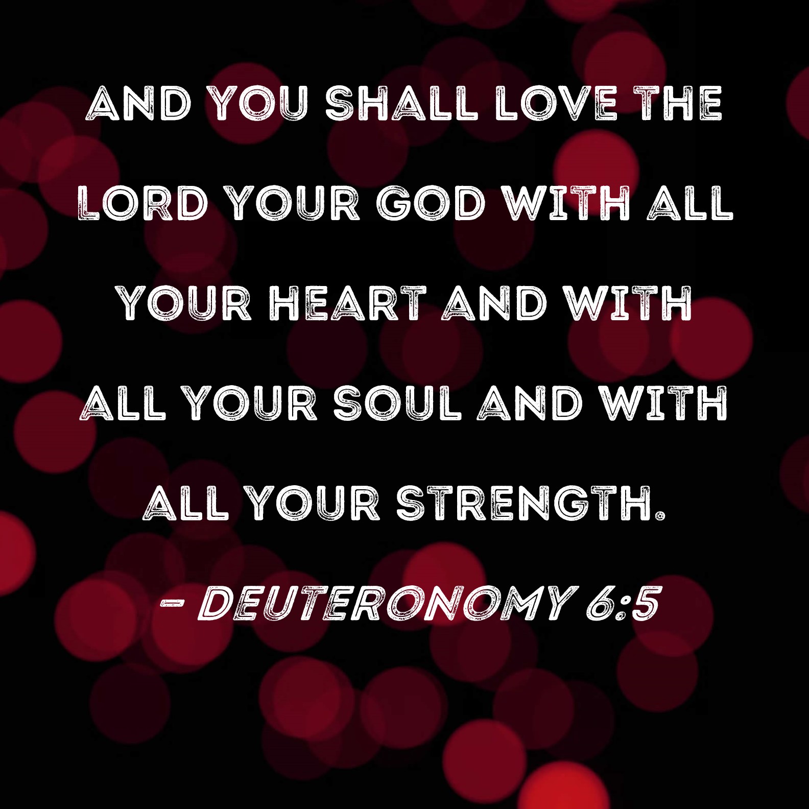 BSB: And you shall love the LORD your God with all your heart and with all your soul and with all your strength. KJV: And thou shalt love the LORD thy God with all thine heart, and with all thy soul, and with all thy might. DRB: Thou shalt love the Lord thy God with thy whole heart, and with thy whole soul, and with thy whole strength. DBT: and thou shalt love Jehovah thy God with all thy heart, and with all thy soul, and with all thy strength. ERV: and thou shalt love the LORD thy God with all thine heart, and with all thy soul, and with all thy might. WBT: And thou shalt love the LORD thy God with all thy heart, and with all thy soul, and with all thy might. WEB: You shall love Yahweh your God with all your heart, with all your soul, and with all your might. YLT: and thou hast loved Jehovah thy God with all thy heart, and with all thy soul, and with all thy might,Links Deuteronomy 6:5 NIV • Deuteronomy 6:5 NLT • Deuteronomy 6:5 ESV • Deuteronomy 6:5 NASB • Deuteronomy 6:5 KJV • Deuteronomy 6:5 Interlinear • Deuteronomy 6:5 Commentaries • Deuteronomy 6:5 Parallel Texts • Deuteronomy 6:5 Bible Apps • Deuteronomy 6:5 Parallel • Bible Hub |