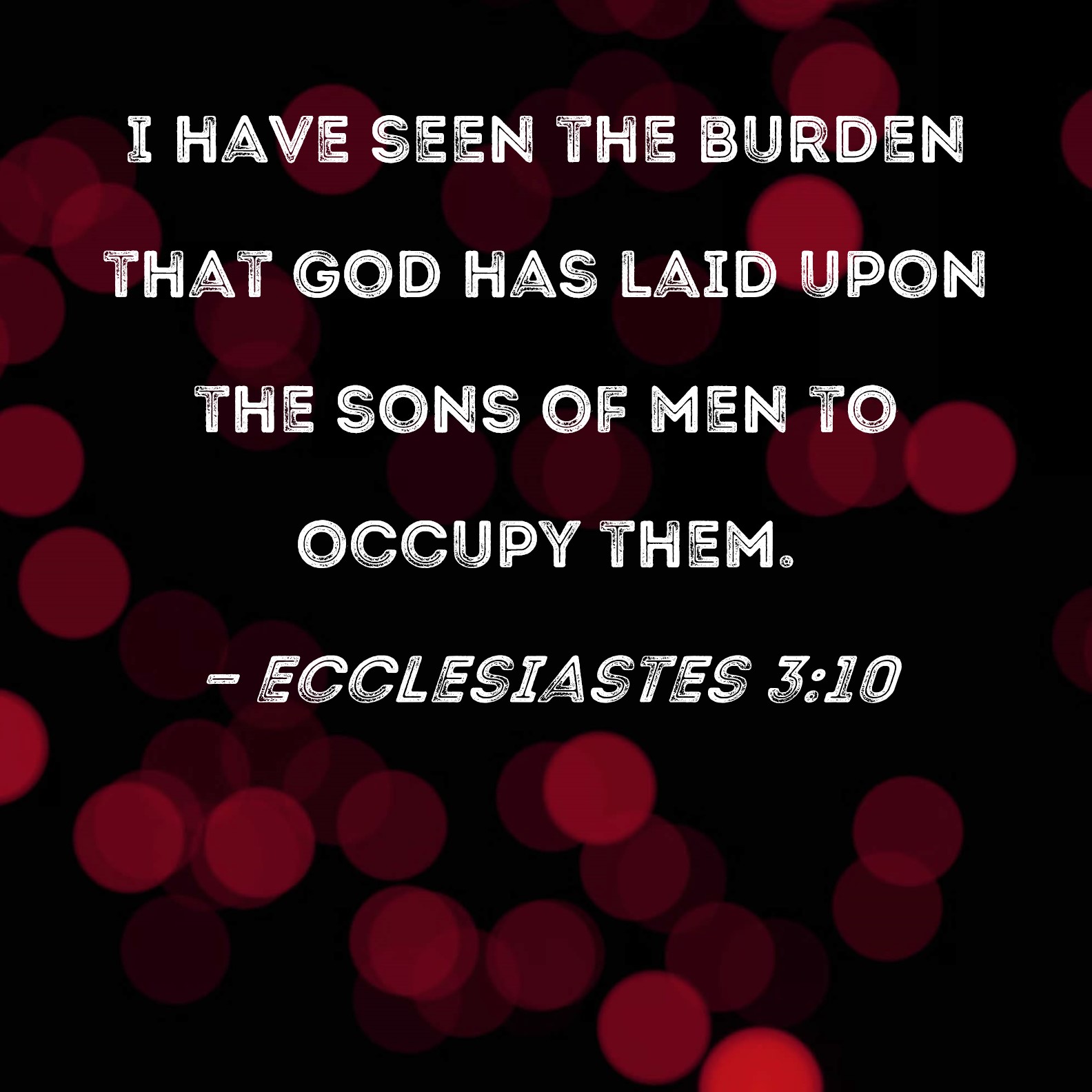 Ecclesiastes 3:10 I have seen the burden that God has laid upon the sons of men to occupy them.