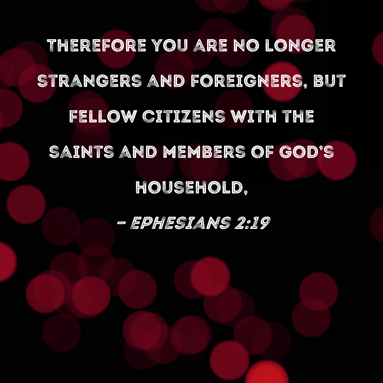 Ephesians 2:19 Therefore you are no longer strangers and foreigners, but fellow citizens with the saints and members of God's household,