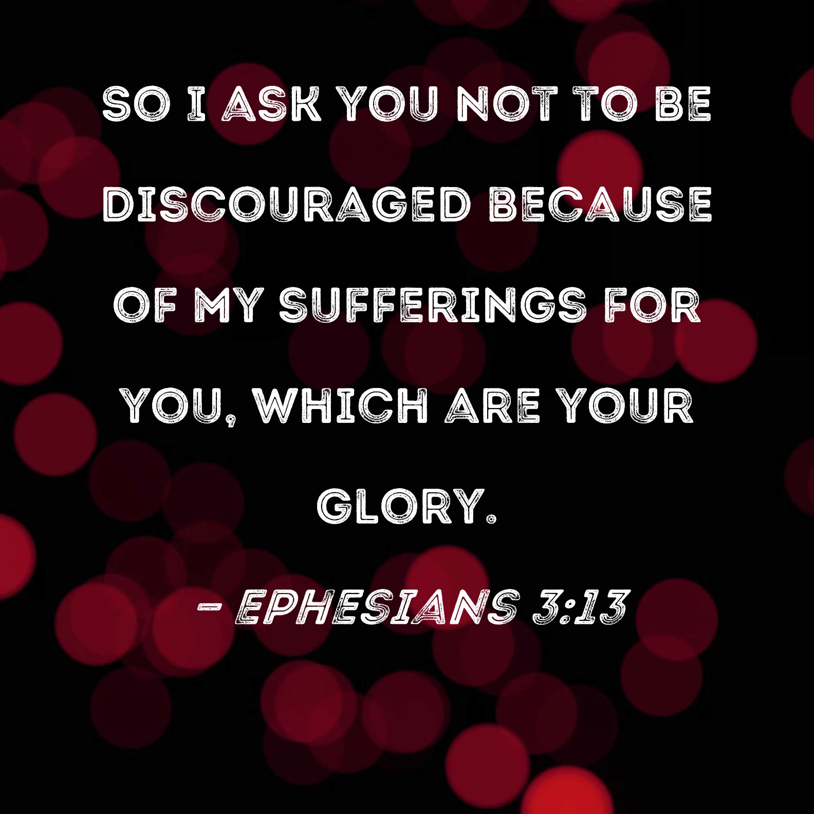 Ephesians 3:13 So I ask you not to be discouraged because of my sufferings for you, which are your glory.