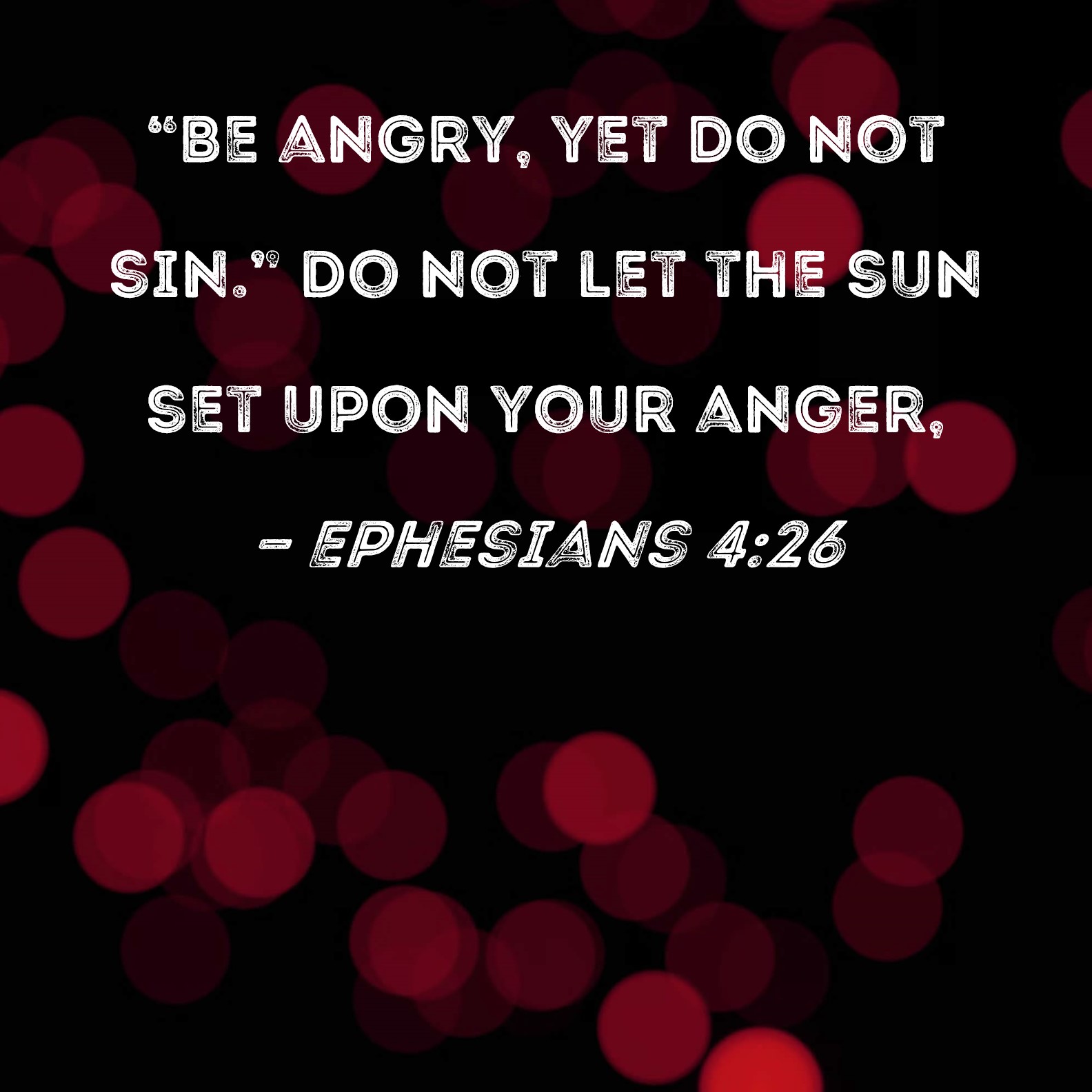 Ephesians 4:26 "Be angry, yet do not sin." Do not let the sun set upon your anger,