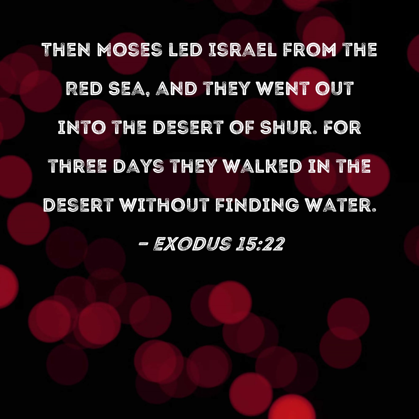 Exodus 15:22 Then Moses led Israel from the Red Sea, and they went out into the Desert of Shur. For three days they walked in the desert without finding water.