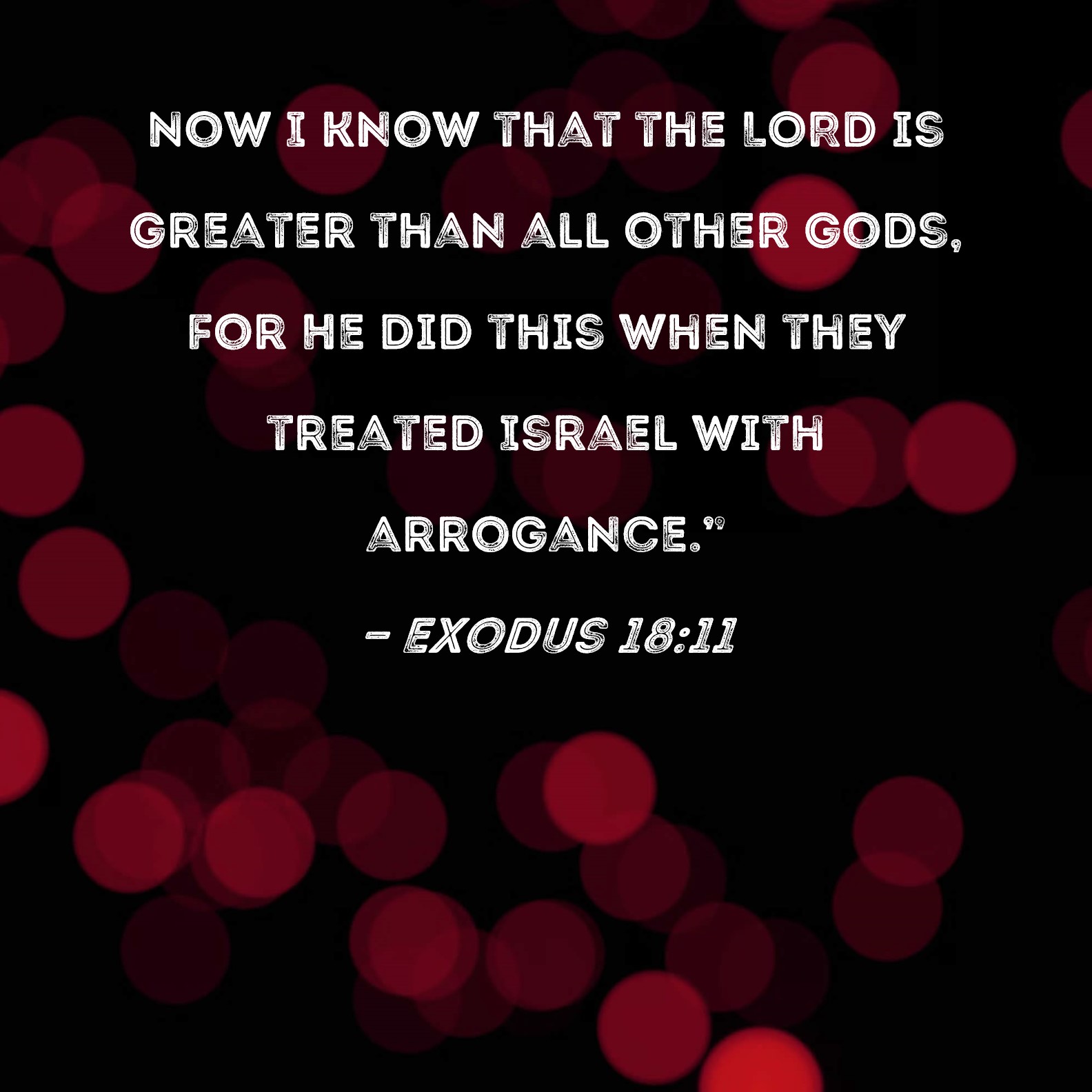 Exodus 18:11 Now I know that the LORD is greater than all other gods, for He did this when they treated Israel with arrogance."