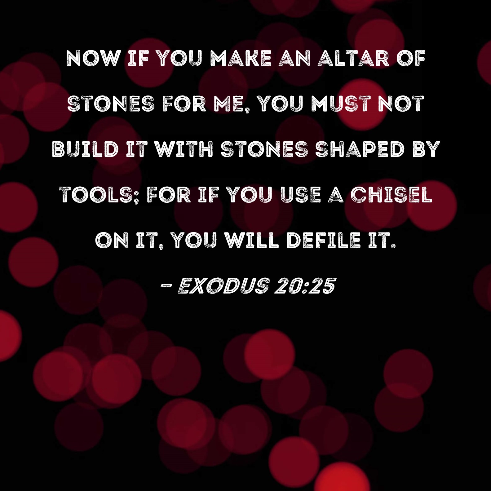 Exodus 20:25 Now if you make an altar of stones for Me, you must not build it with stones shaped by tools; for if you use a chisel on it, you will defile it.