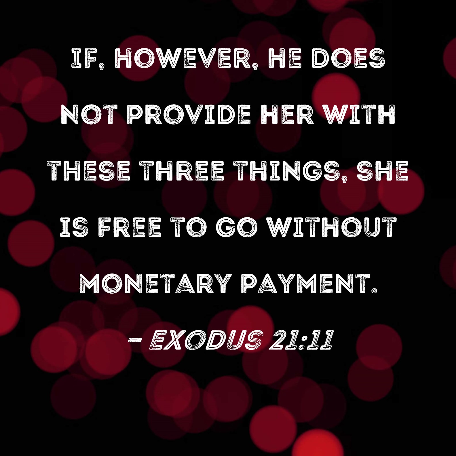 Exodus 21:11 If, however, he does not provide her with these three things, she is free to go without monetary payment.