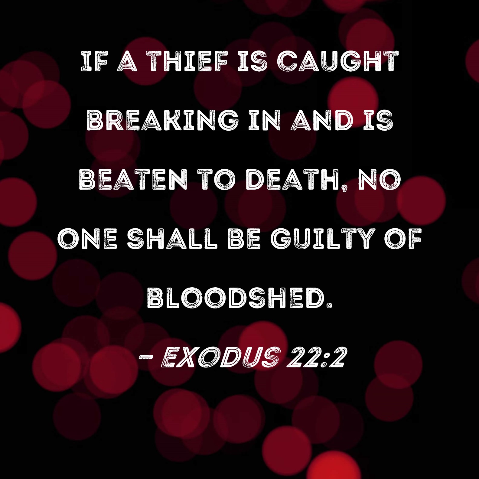 Exodus 22:2 If a thief is caught breaking in and is beaten to death, no one shall be guilty of bloodshed.
