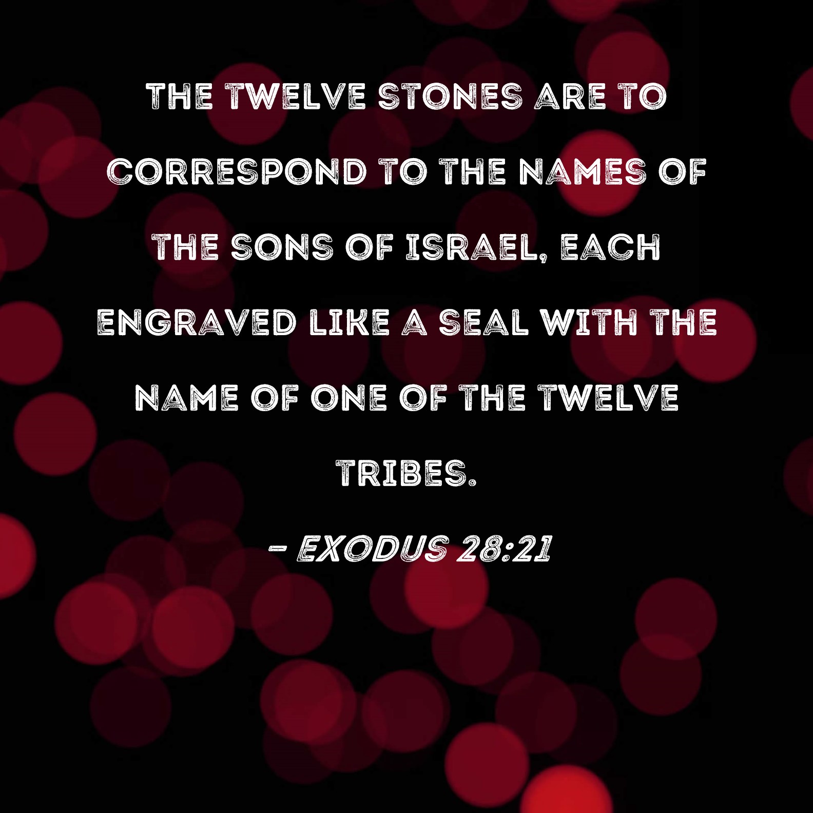 Exodus 28:21 The twelve stones are to correspond to the names of the sons of Israel, each engraved like a seal with the name of one of the twelve tribes.