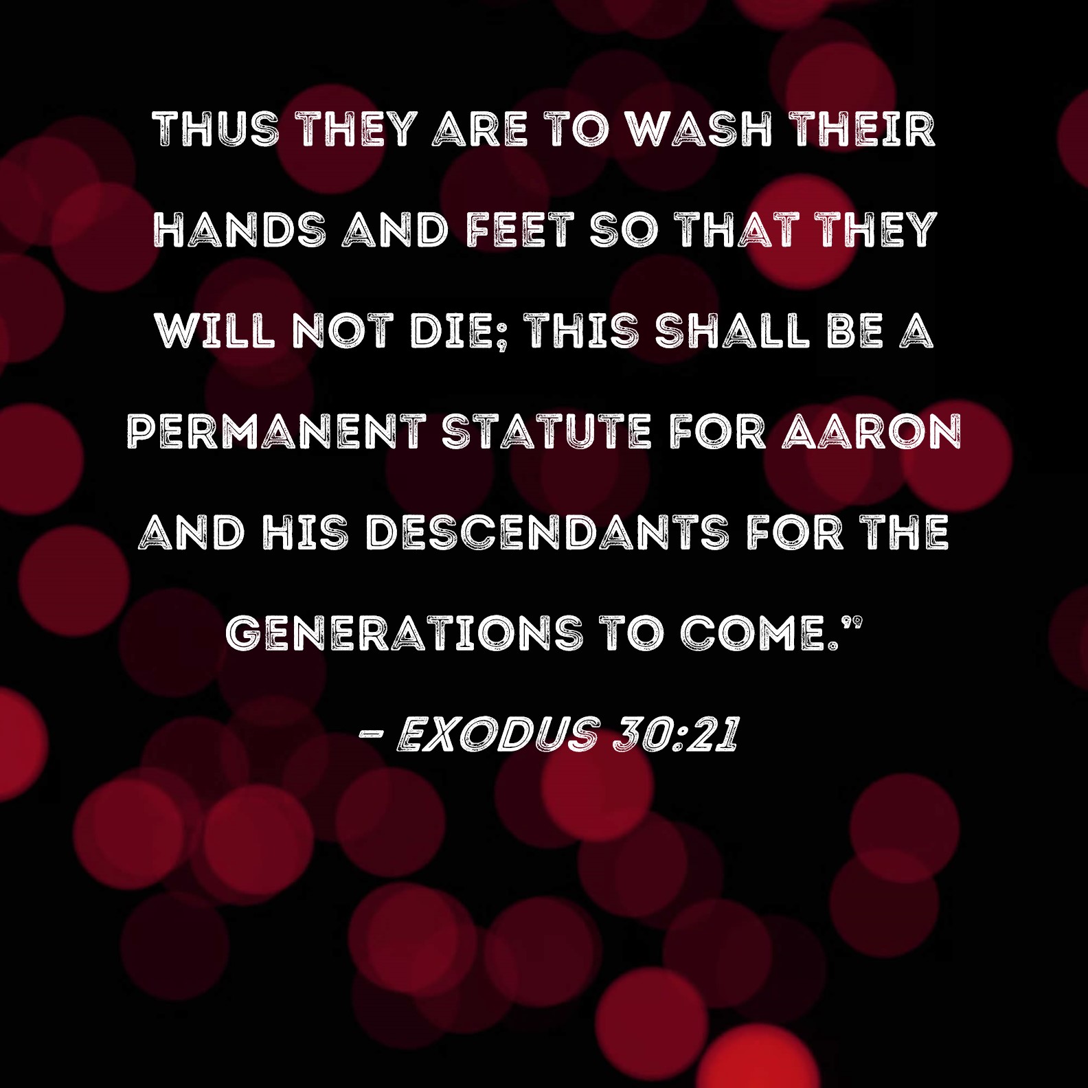 Exodus 30:21 Thus they are to wash their hands and feet so that they will not die; this shall be a permanent statute for Aaron and his descendants for the generations to come."
