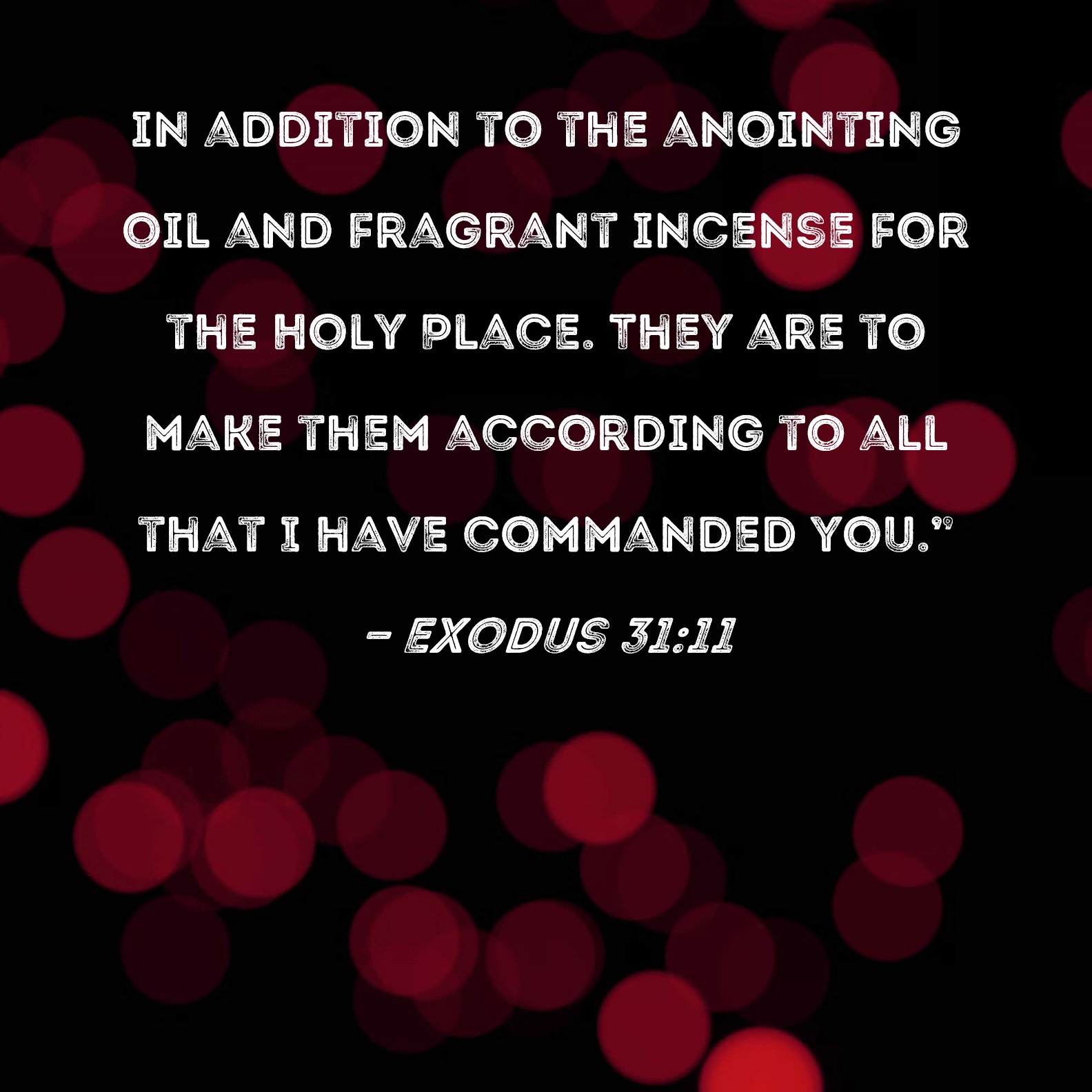 Exodus 31:11 in addition to the anointing oil and fragrant incense for the Holy Place. They are to make them according to all that I have commanded you."