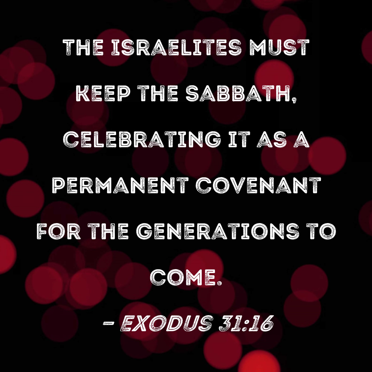 Exodus 31:16 The Israelites must keep the Sabbath, celebrating it as a permanent covenant for the generations to come.