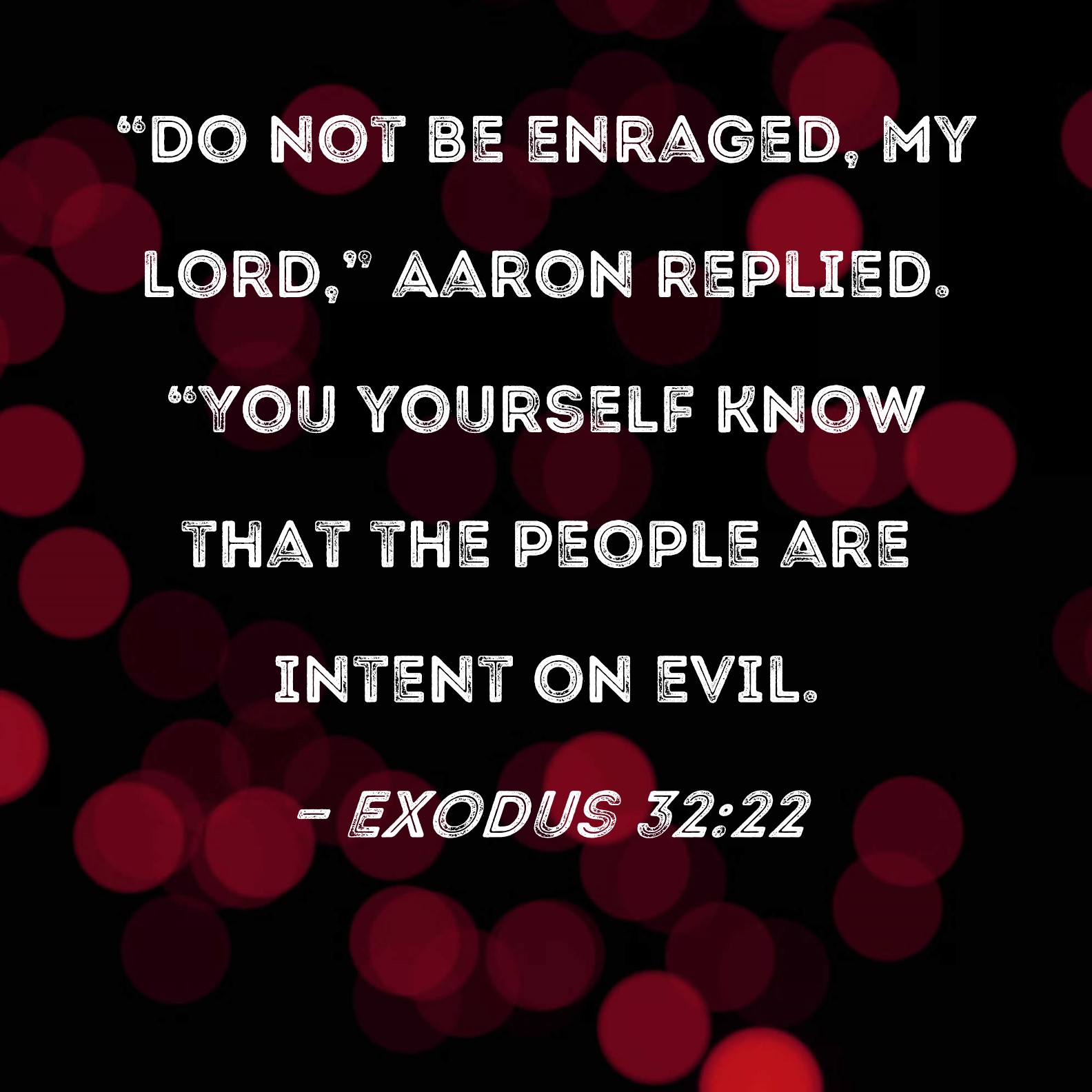 Exodus 32:22 "Do not be enraged, my lord," Aaron replied. "You yourself know that the people are intent on evil.